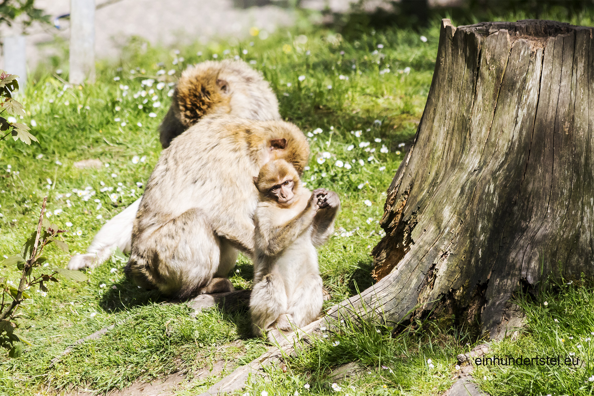 die Affen aus allernächster Nähe sieht. Manchmal laufen sie auch direkt an einem vorbei.