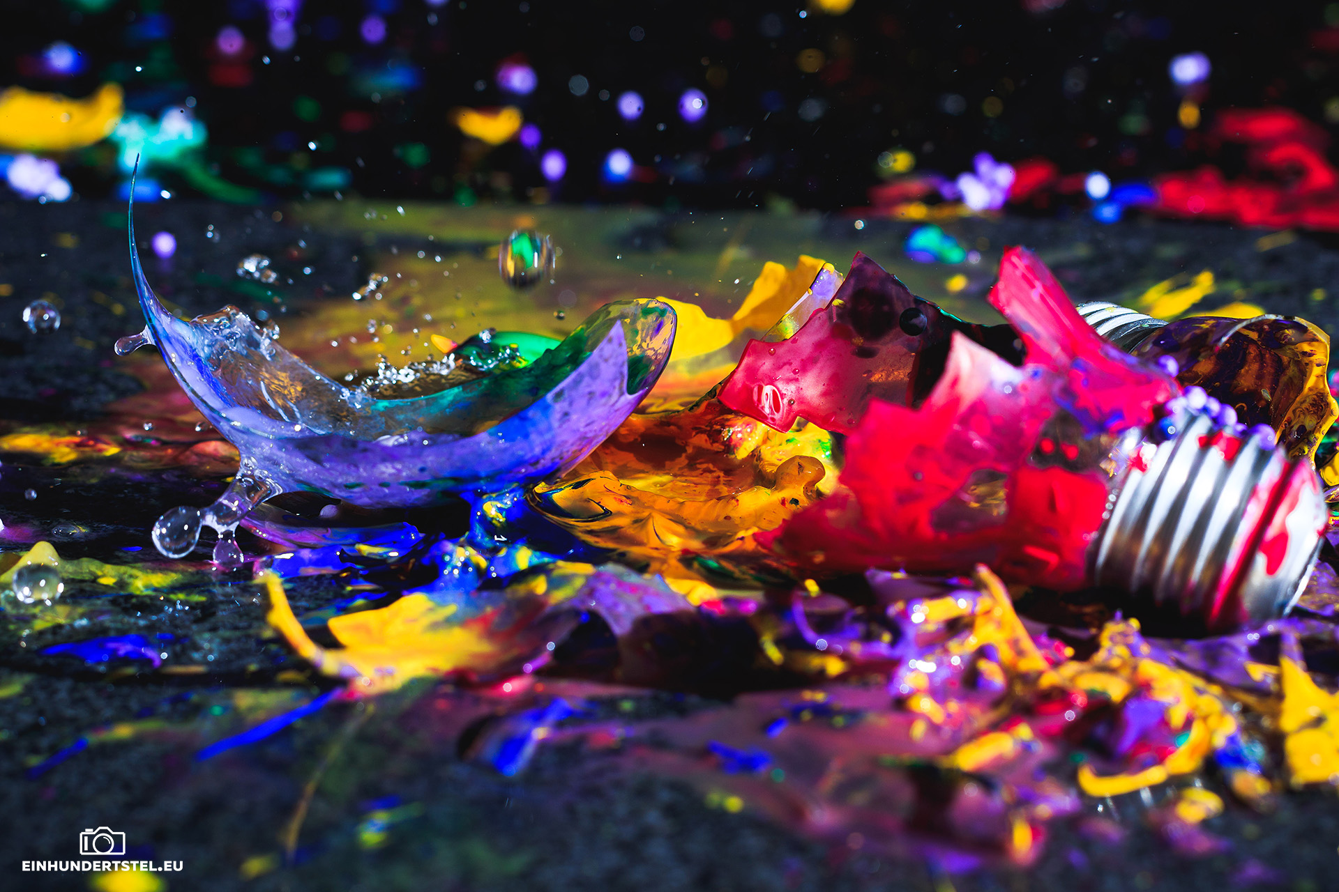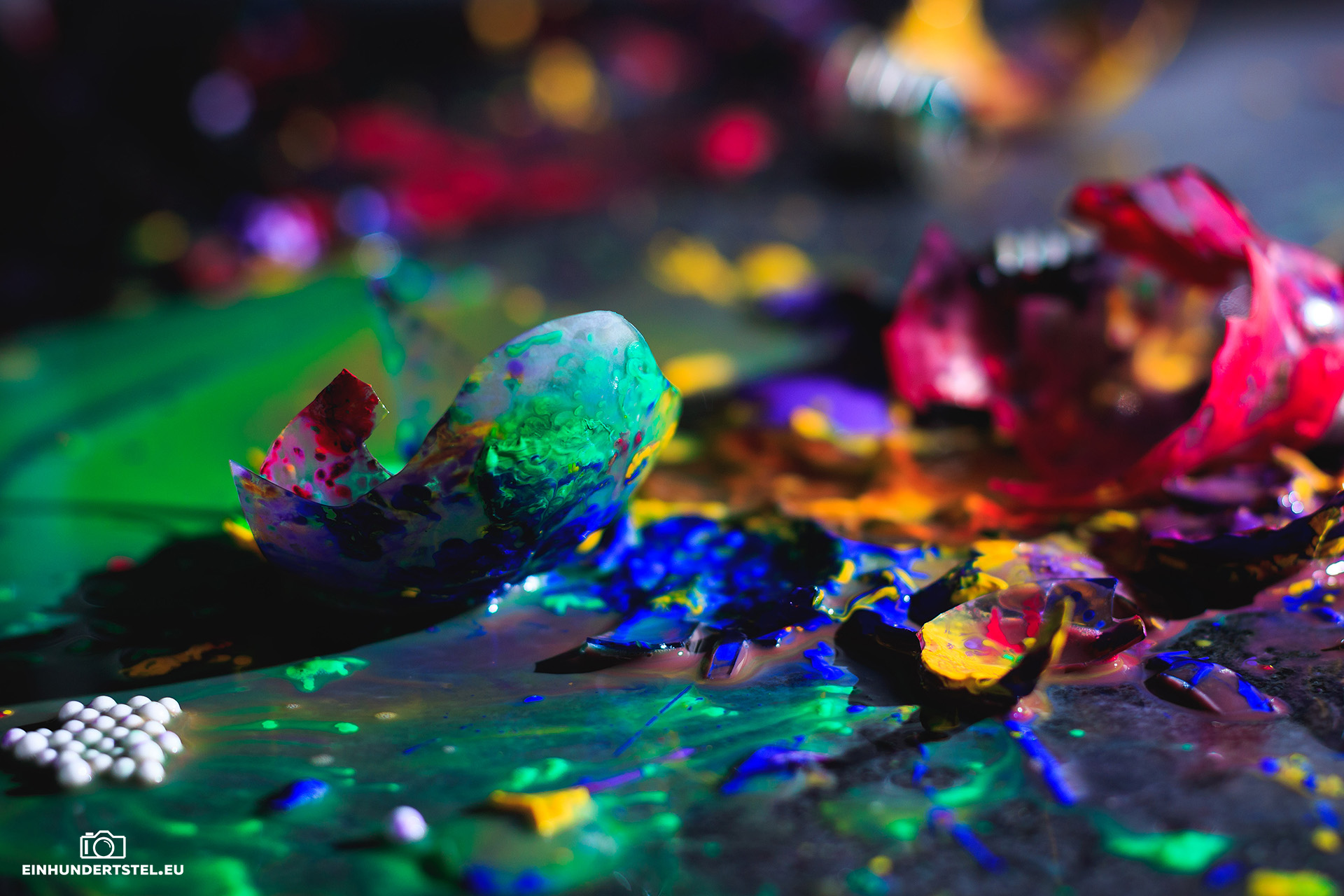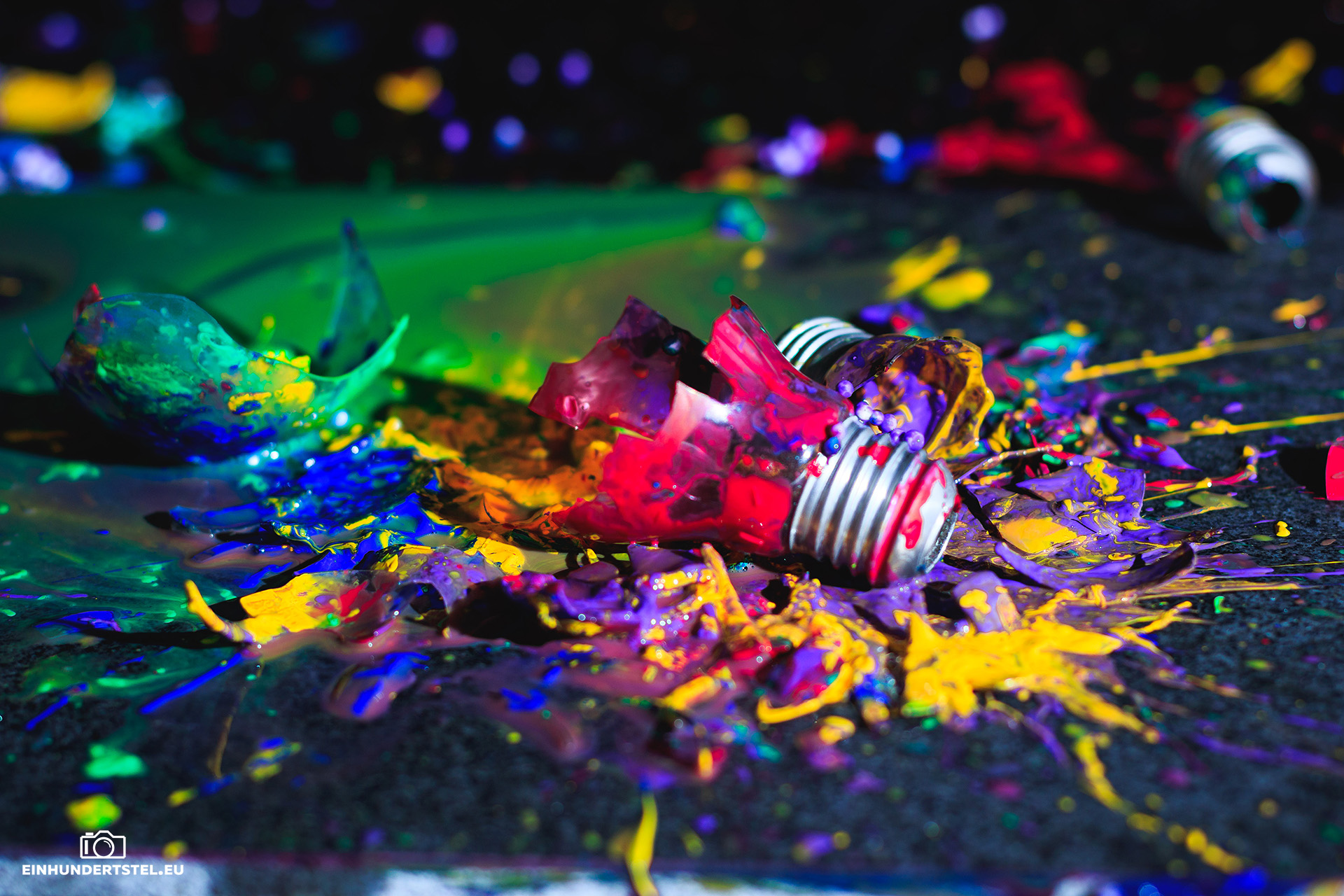 Nehmt doch einfach eure Kugeln und funktioniert sie um. Füllt sie mit Farbe und lasst sie auf den Boden fallen. Dann müsst ihr im richtigen Moment noch ein Foto schießen und ihr habt euren Kugeln ein zweites Leben geschenkt.