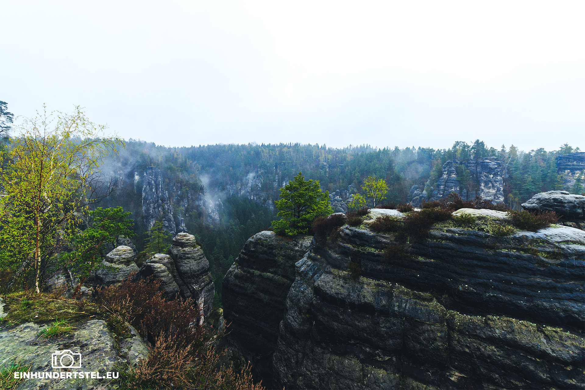 Wie von Zauberhand geführt und auch gar nicht geplant, haben wir die Felsenburg Neurathen gefunden. Naja, vielleicht nicht wirklich gefunden sondern mehr oder weniger direkt rein gestolpert. Das war eine Tour die ich unbedingt planen wollte und nun hatten wie sie auf unserem Erkundungsweg einfach so entdeckt. So erlebten wir eben diese Felsenburg Neurathen (auch Wehranlage genannt) bei trüben Wetter.