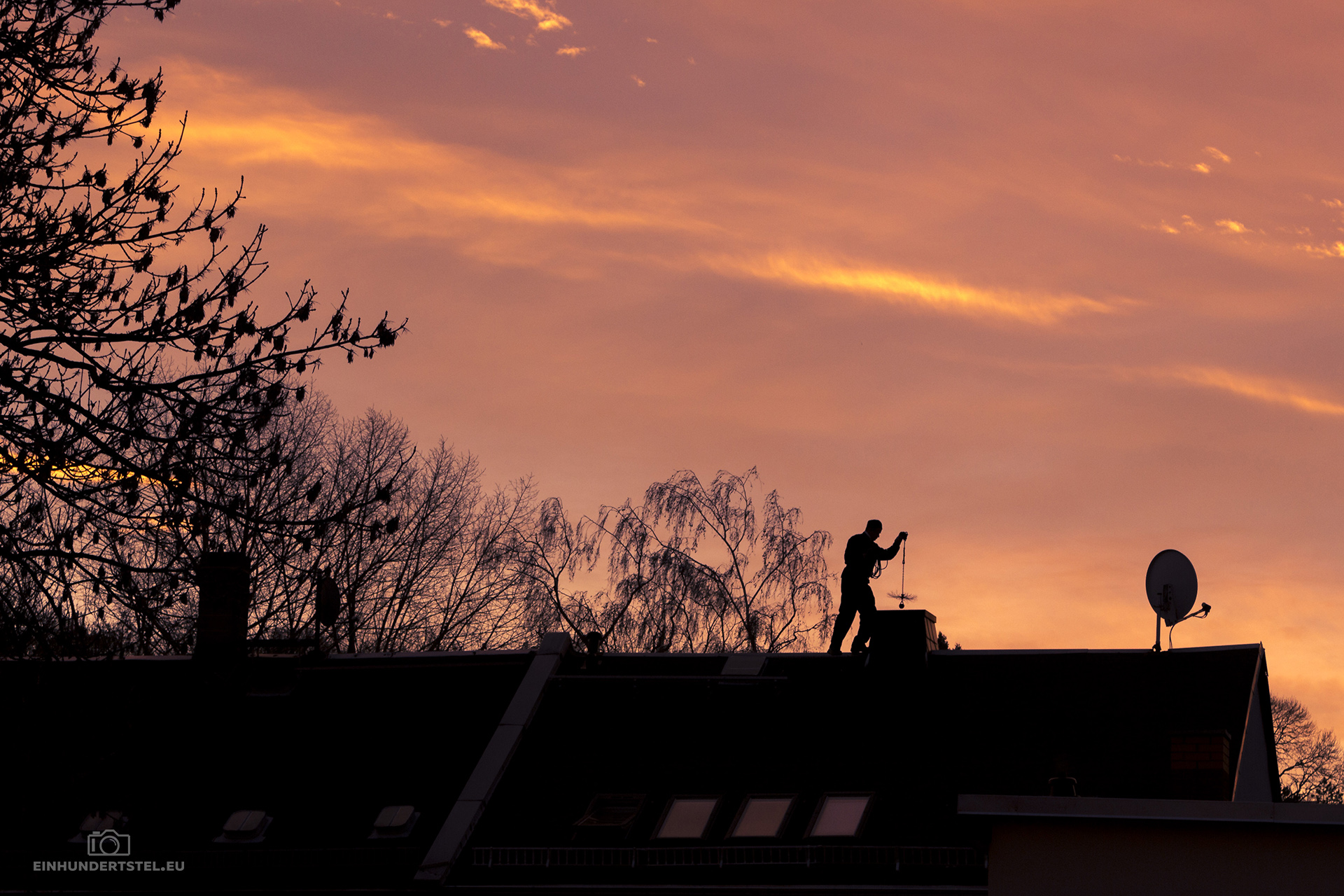 Der Schornsteinfeger war schon ganz früh fleißig unterwegs und so konnte er mir noch Glück bringen, bevor ich auf Arbeit fahren musste. Noch dazu hat er einen wirklich wunderschönen Sonnenaufgang als Hintergrund mitgebracht. Da konnte ich dann doch nicht widerstehen und hab meine Kamera schnell geholt.