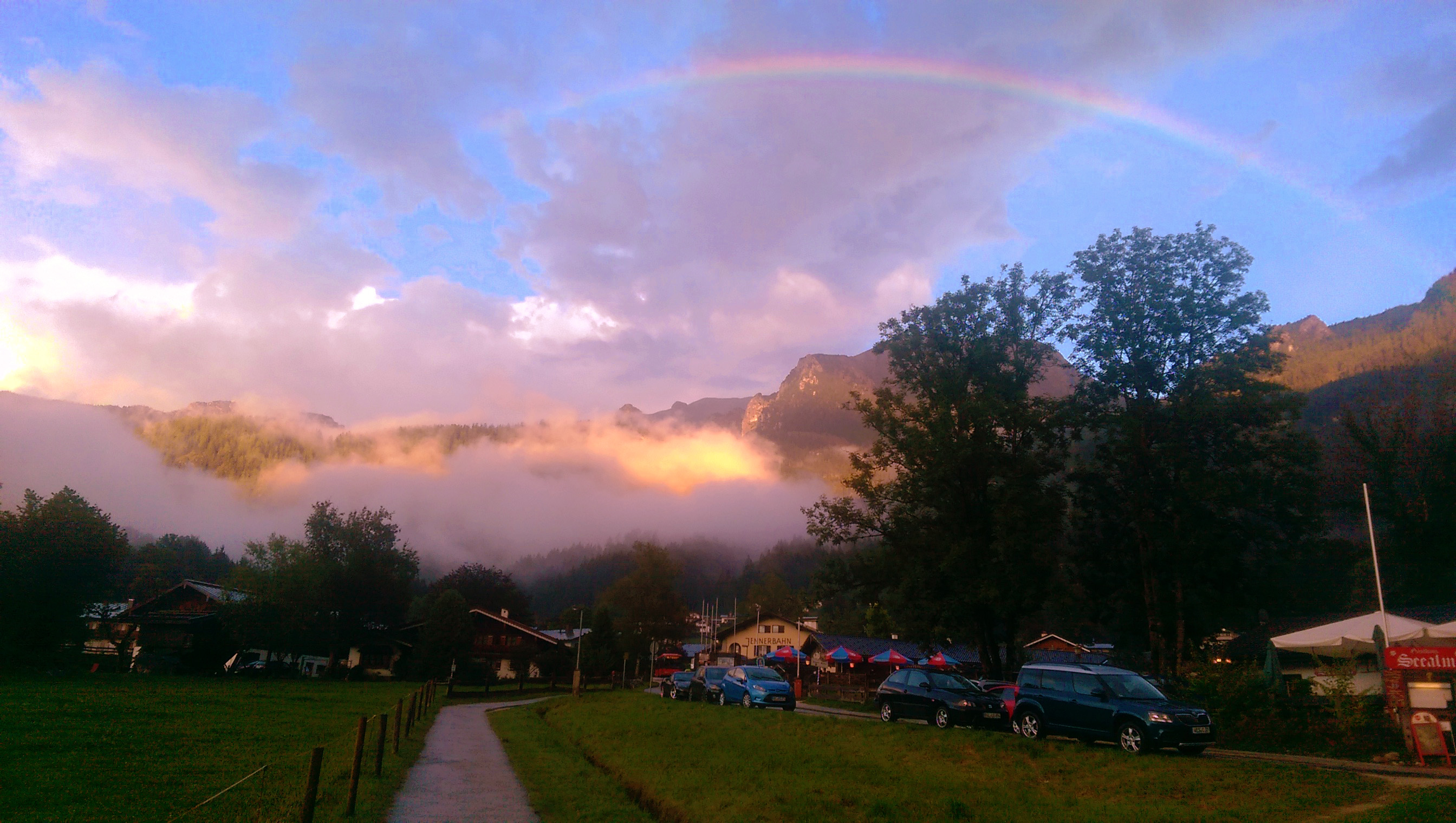 Frisch gestärkt wollten wir die Gegend erkunden. Fuhren an den Königssee und stellten fest, dass wir die Kurkarte schon brauchen könnten. Also zurück nach Bischofswiesen. Zum Einchecken waren wir immer noch zu früh dran. War erst ab 16:00 Uhr gewünscht. Also kurze Auszeit im Auto (ziemlich unbequem). Rico kann wohl überall schlafen?!?!