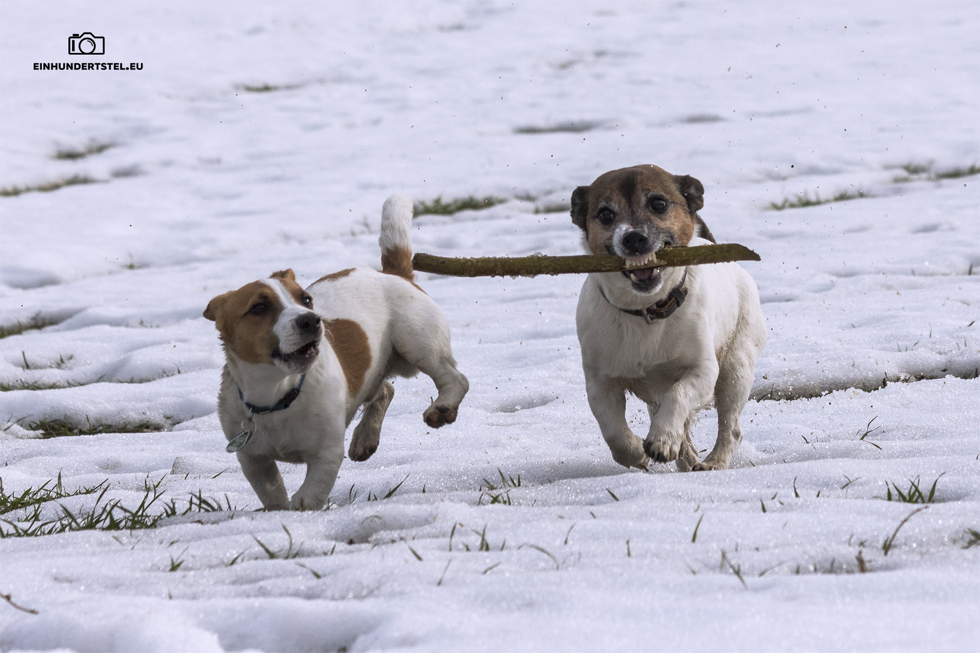 Somit hatte ich ein klitzekleines Problem. Mein Wurfarm entspricht eher nicht dem eines NFL-Spielers. Eher so Kindergartenniveau. Der Stock flog also, aus welchen Gründen auch immer, nur ein paar Meter… Was für Timi und Rocky ein gefundenes Fressen war, denn das Stöckchen holen war keine unlösbare Aufgabe. Viel zu schnell waren sie mit dem Ast wieder da und ich hatte natürlich noch kein Foto im Kasten.