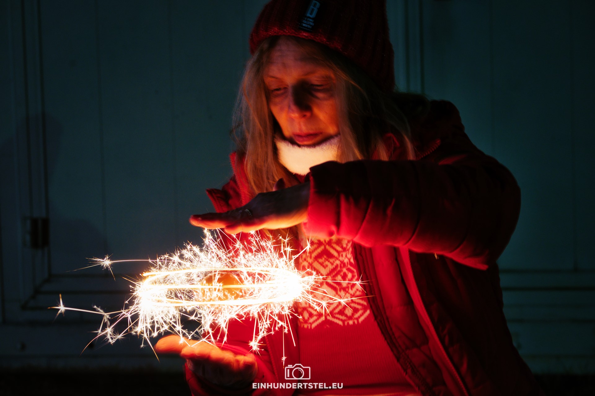 Zum einen habe ich mit Color-Wunderkerzen das Jahr 2025 in den Himmel geschrieben. Nach zwei Packungen Color-Wunderkerzen-Verbrauch war der vorletzte Versuch wohl auch der Beste. Nicht perfekt, aber das Resultat zeigen wir euch und mit diesem Foto sollen euch unsere besten Wünsche im Jahr 2025 begleiten.