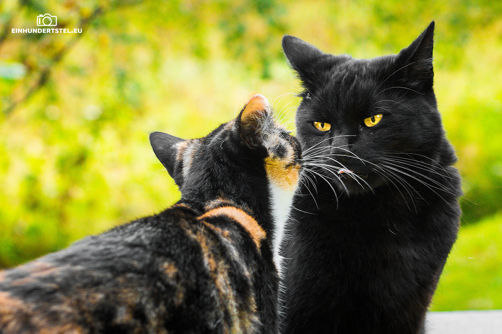 Auf den Fotos ist das kleine Kätzchen schon 4 1/2 Monate alt.  Elli wächst und gedeiht und hat wohl auch einen Freund gefunden. Oder zwei. Kaninchen Ben und auch Kater Moritz sind wohl ihrem Charme verfallen. Doch ihre Dosenöffnerin hat mir verraten, dass da der Schein trügt. Elli und Moritz sind wohl bloß draußen die dicksten Freunde, in der Wohnung sieht das ganz anders aus.