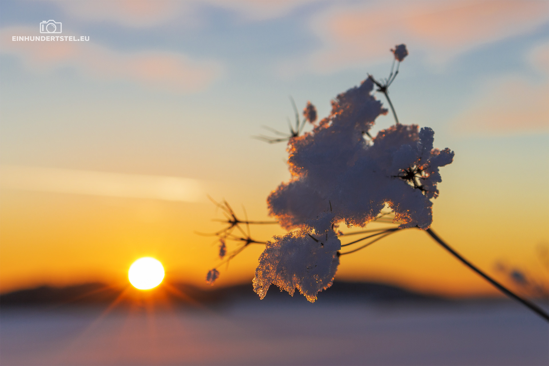 Dieses Foto habe ich gleich früh aufgenommen auf dem Weg zur Arbeit. Diese wunderschöne tief eingefrorene Landschaft und die aufgehende Sonne haben diese zauberhafte Atmosphäre geschaffen. Da hat es sich doch mal bezahlt gemacht, nicht erst in letzter Minute zu Hause los zu fahren.