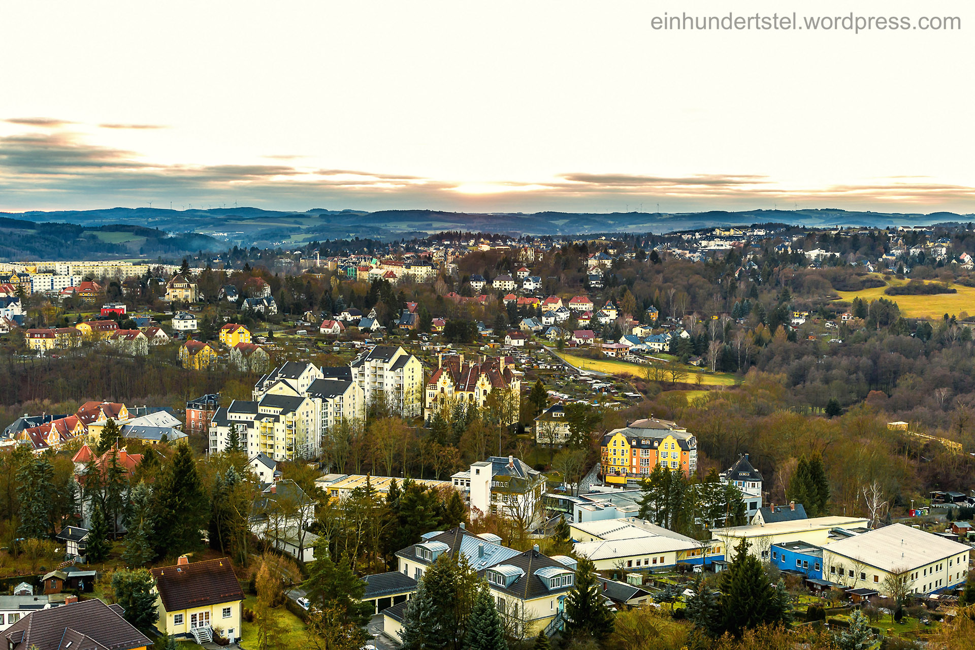 Zur Weihnachtszeit nutzen wir die Chance und begaben uns in Plauen (66.287 Einwohner) auf den Rathausturm (Gesamthöhe beträgt 64 m), um die Stadt von oben zu fotografieren. 42,4 m Höhe und 230 Stufen (über den Dächern von Plauen), die mir schon wieder den Atem raubten. Der Blick von oben war dann aber auch atemberaubend. Wir stellen hier einmal eine Langzeitbelichtung, eine Timelaps, ein HDR und ein Panoramabild vor. Ein Foto wurde vom Bärensteinturm aus gemacht (ist schon eine ältere Aufnahme). Hat hier aber sehr gut mit her gepasst.