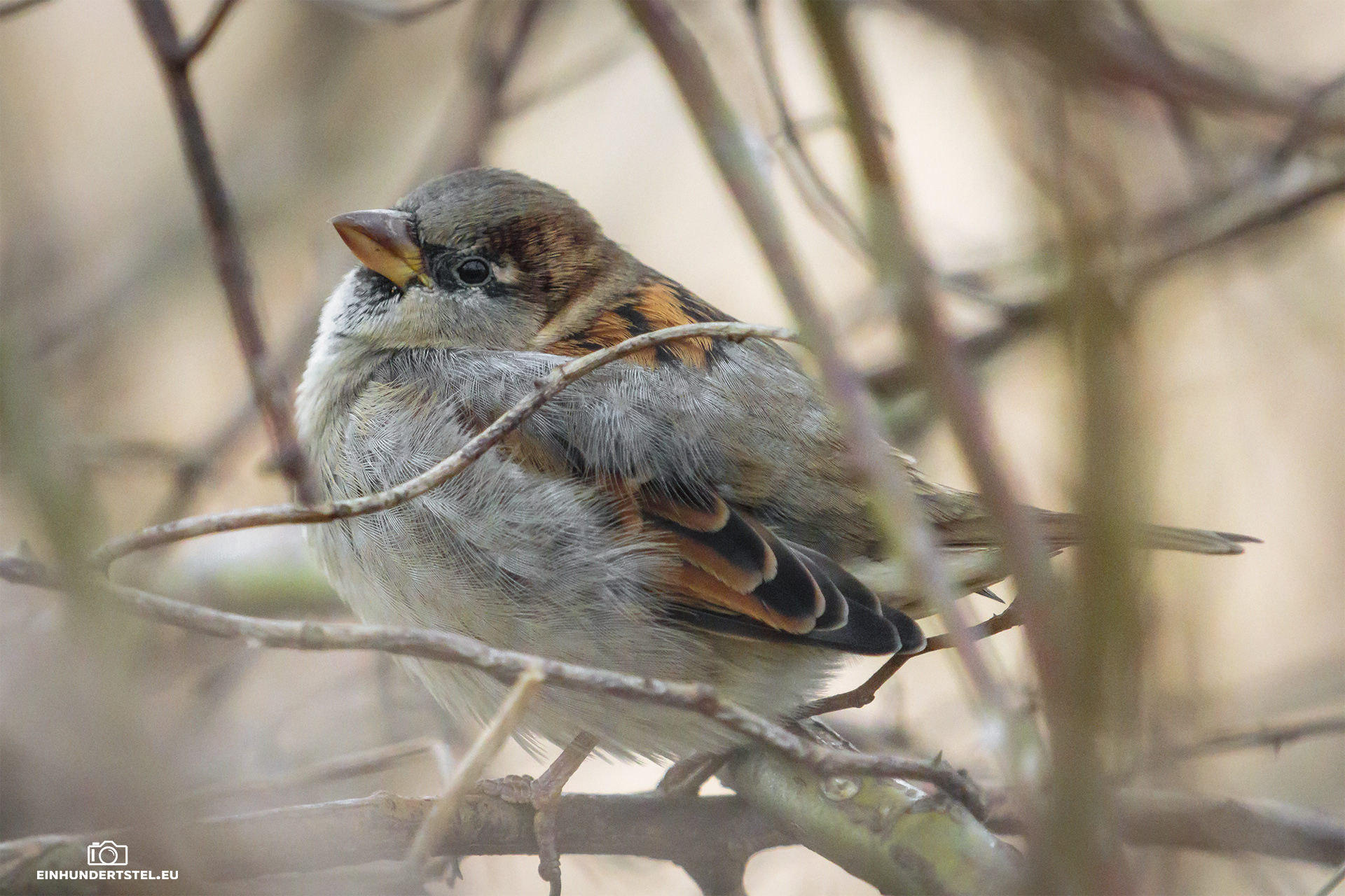 Um aber wenigstens nicht meine Tierfotografie zu kurz kommen zu lassen, bin ich auf Streifzug durch Plauen auf diese Spatzen gestoßen. Diese hatten sich im Gebüsch eines großen Strauchs versteckt. Dort war bestimmt ihr beliebter Treffpunkt, denn es waren einige Spatzen da und eine entsprechende Geräuschkulisse war auch vorhanden.