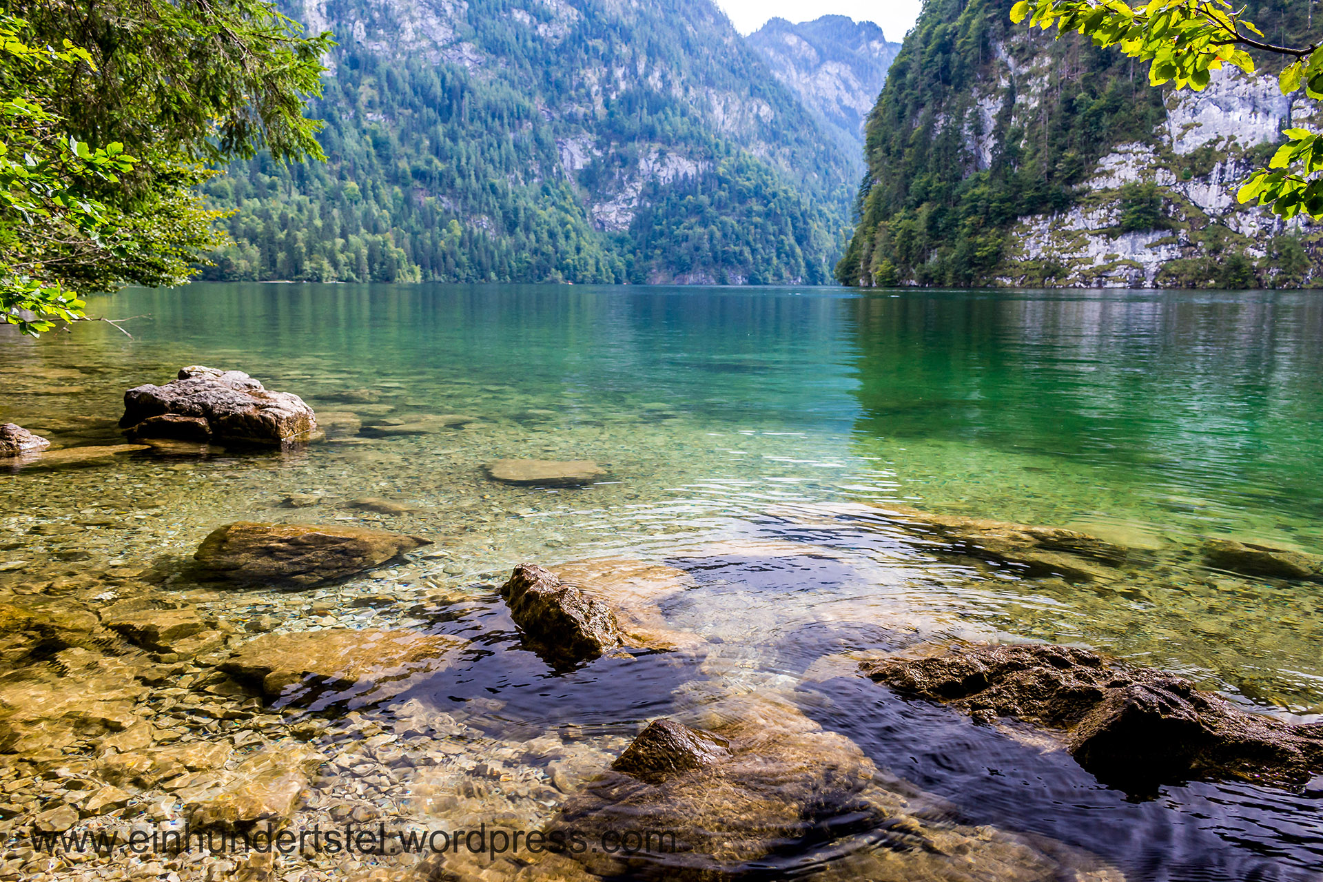 Unsere Tour führte den Malerwinklerweg entlang. Abenteuerlustig wie wir waren, kraxelten wir, abseits der eigentlichen Route, den Berg runter bis zum See, um von dort herrliche Langzeitaufnahmen des Königssees zu machen. Endlich konnten Rico seinen neu erworbenen Polfilter austesten. Zusammen mit dem Graufilter dazu perfekt geeignet.