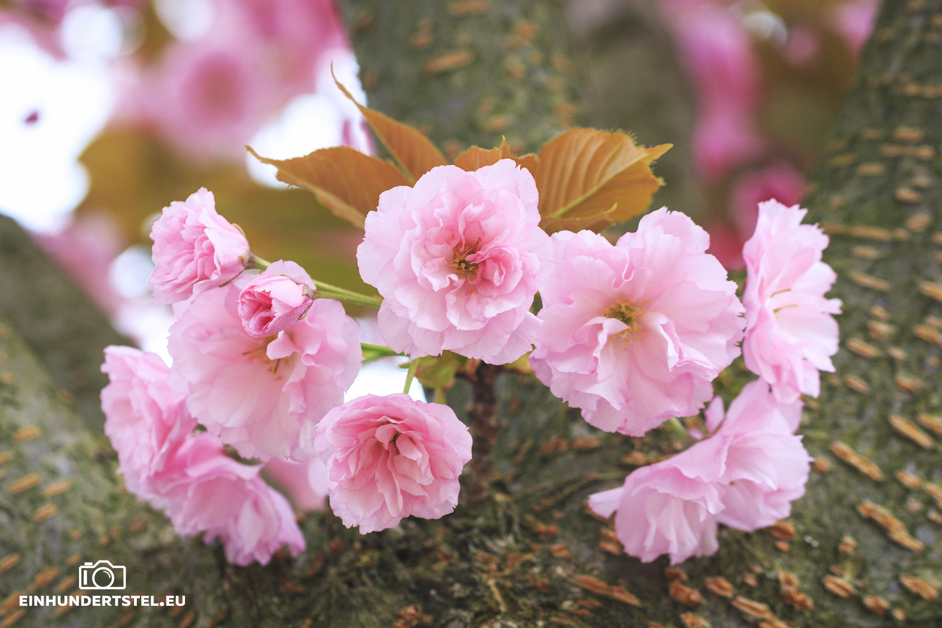 Bei dem folgenden Bild und in der Galerie die oberen Blüten könnten von dem Baum der Blutpflaume sein. Sicher bin ich jedoch nicht. Früher haben wir doch von solchen Bäumen überhaupt nichts gehört. Eigentlich weiß ich nicht mal seit wann es die überhaupt gibt.
