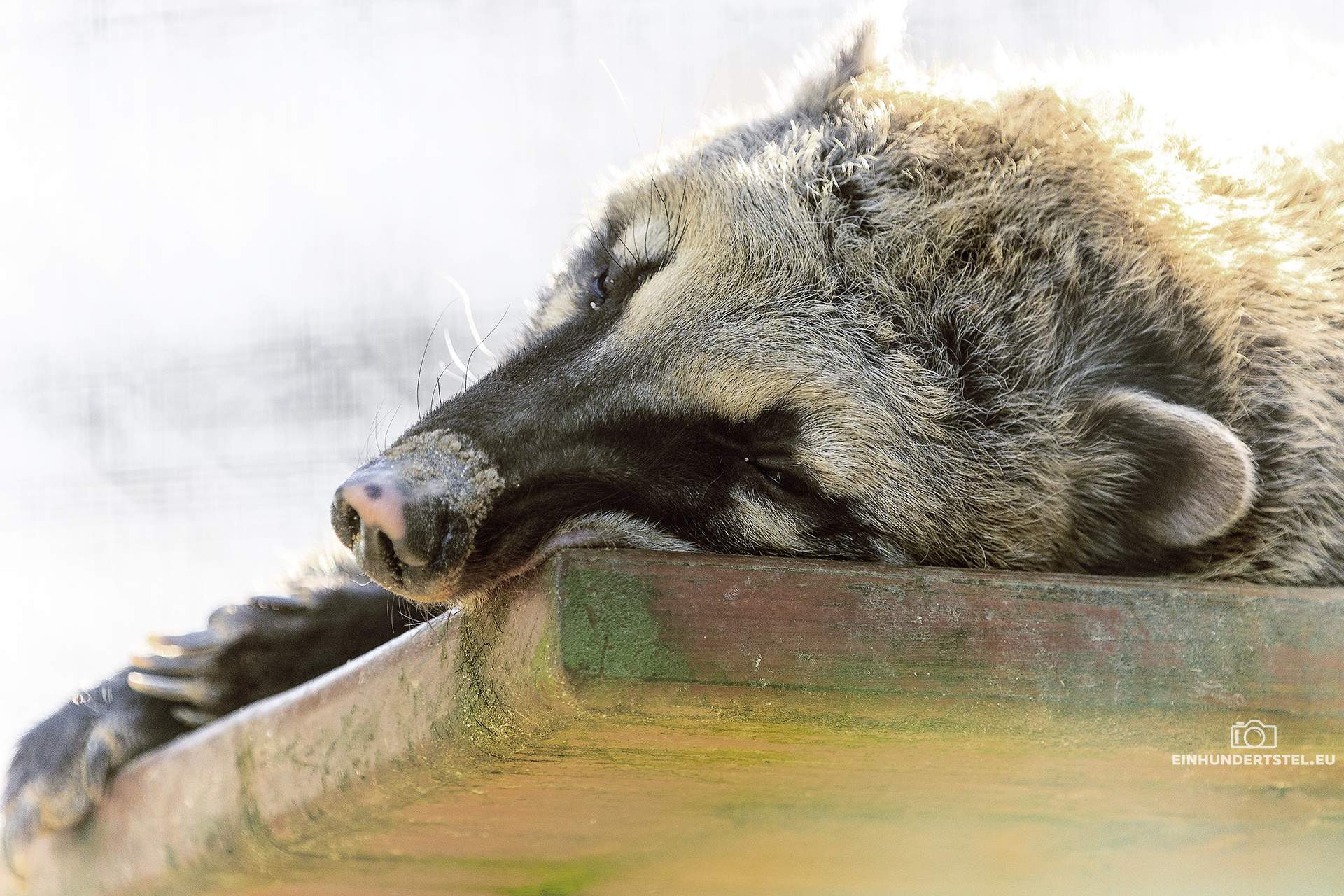 So haben wir den Otter nicht zu Gesicht bekommen und den Wolf auch nicht. Bei den Bären hatte zumindest einer ein Einsehen und präsentierte sich seinem Publikum. Sehr beschäftigt versuchte er sich einen schattigen und kühlen Platz zu schaffen. Dies gelang ihm dann auch indem er sich in der Erde ein kleine Höhle erschaffen hat. Beobachten kann man die Bären und Wölfe von einer Terrasse aus. Wenn sie sich denn sehen lassen.