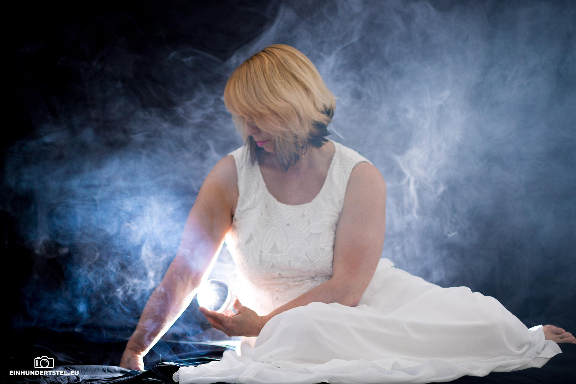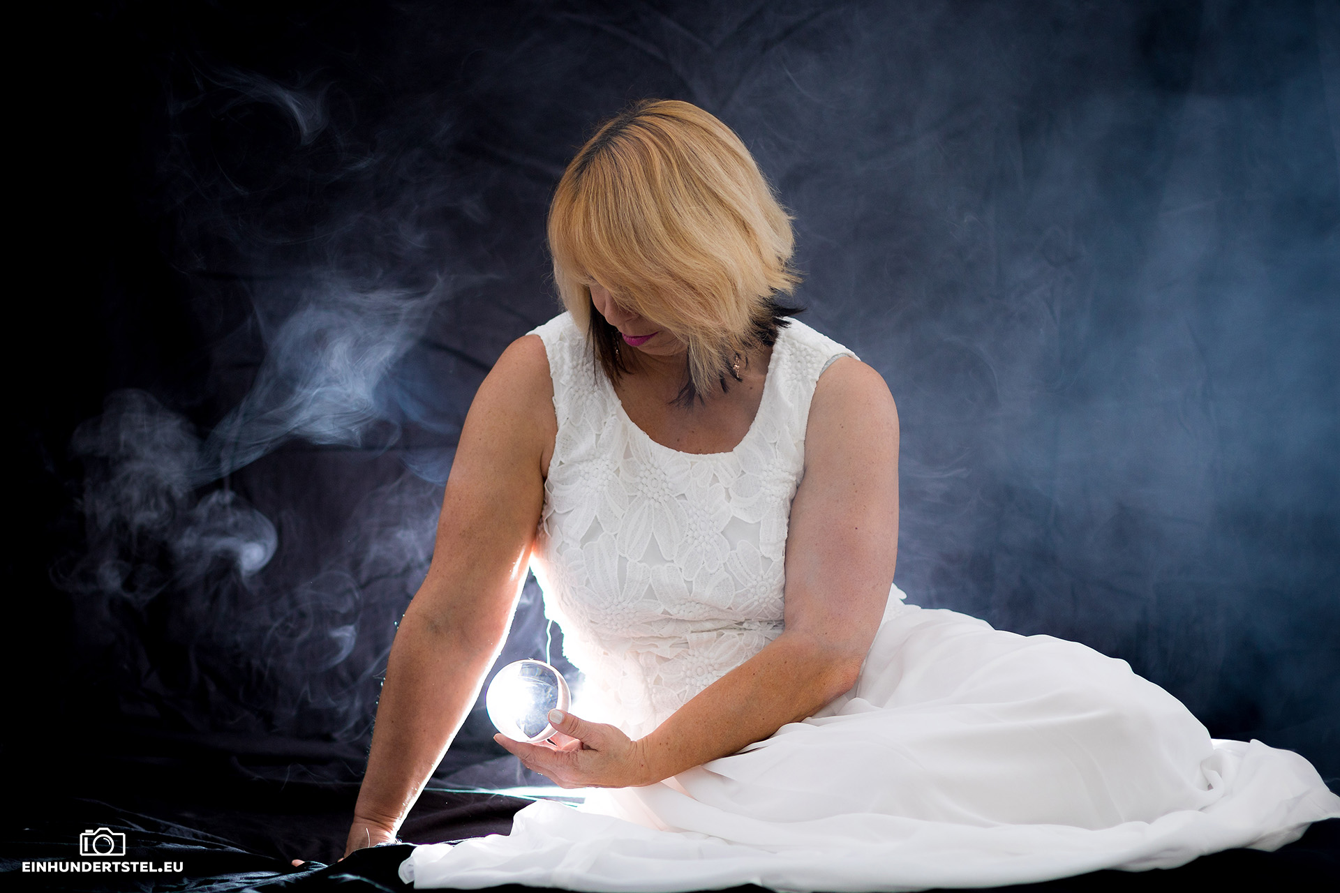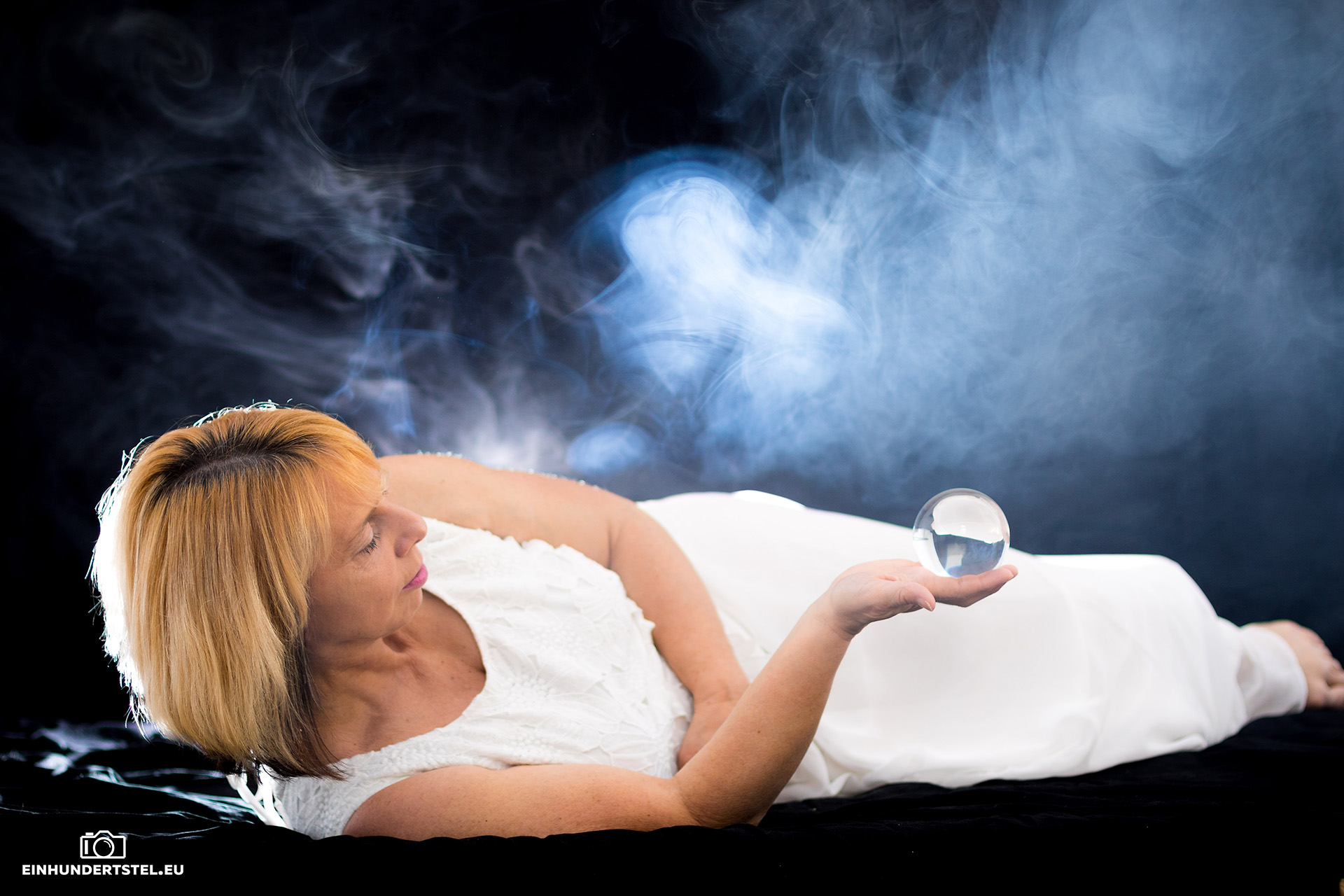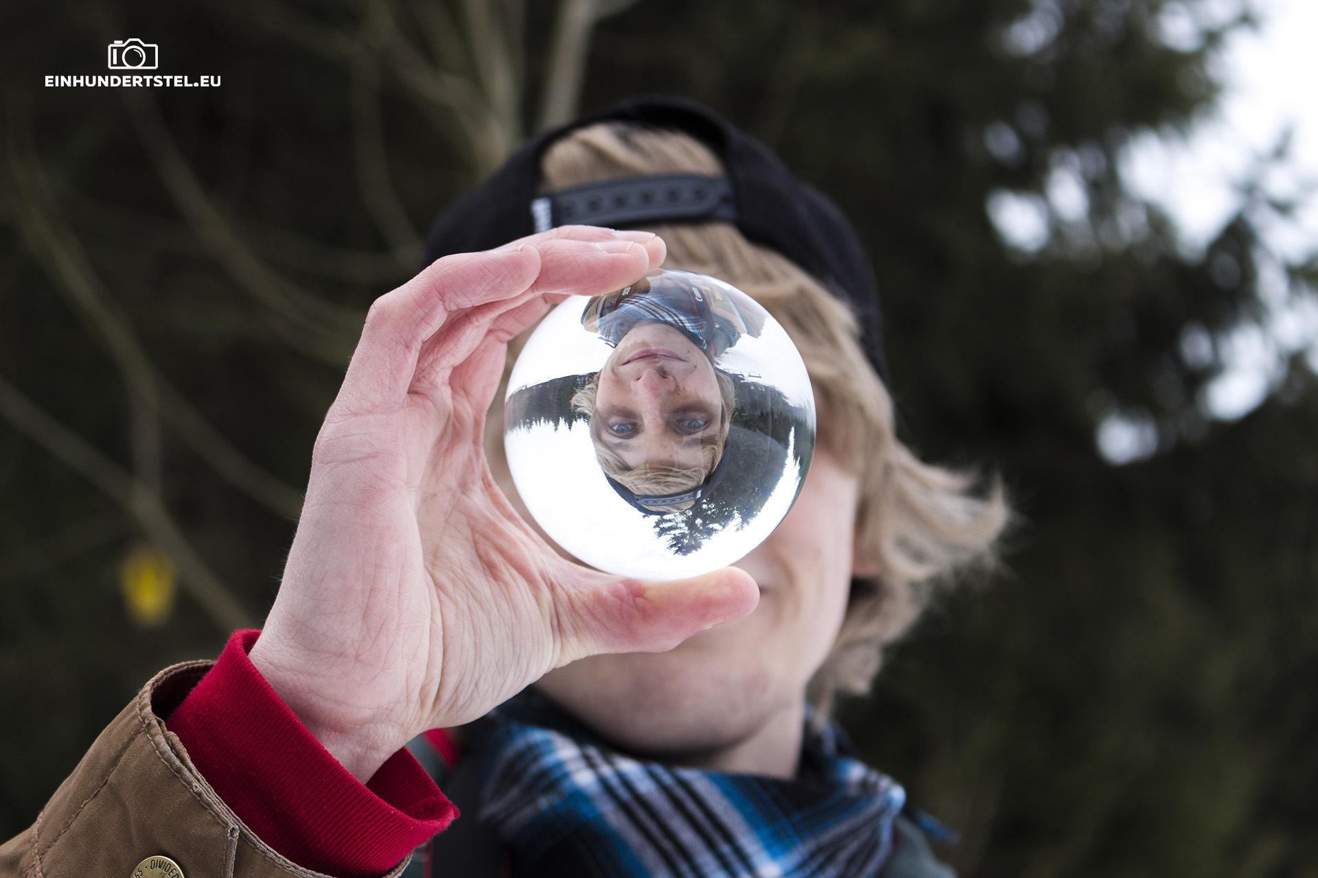 Die Glaskugel am ausgestreckten Arm eine Zeitlang in Position zu halten, hat echt meine ganze Muskelkraft in Anspruch genommen. Welche Muskeln? Ich hab doch gar keine mehr. Jedenfalls keine die in Top-Form sind. Deshalb ist mir dies nur bei einem Foto gelungen. Eigentlich hätte sich auch der Fotograf mal bisschen beeilen können. 😉