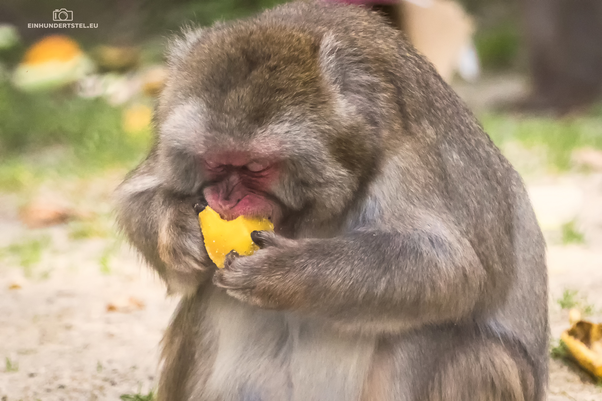 Ein anderer Rotgesichtsmakake war mit Nahrungsaufnahme beschäftigt und zu zweit versuchten sie noch weitere Leckereien in verschiedenen Verpackungen aufzustöbern. Diese Fotos könnt ihr unten in der Bildergalerie sehen.