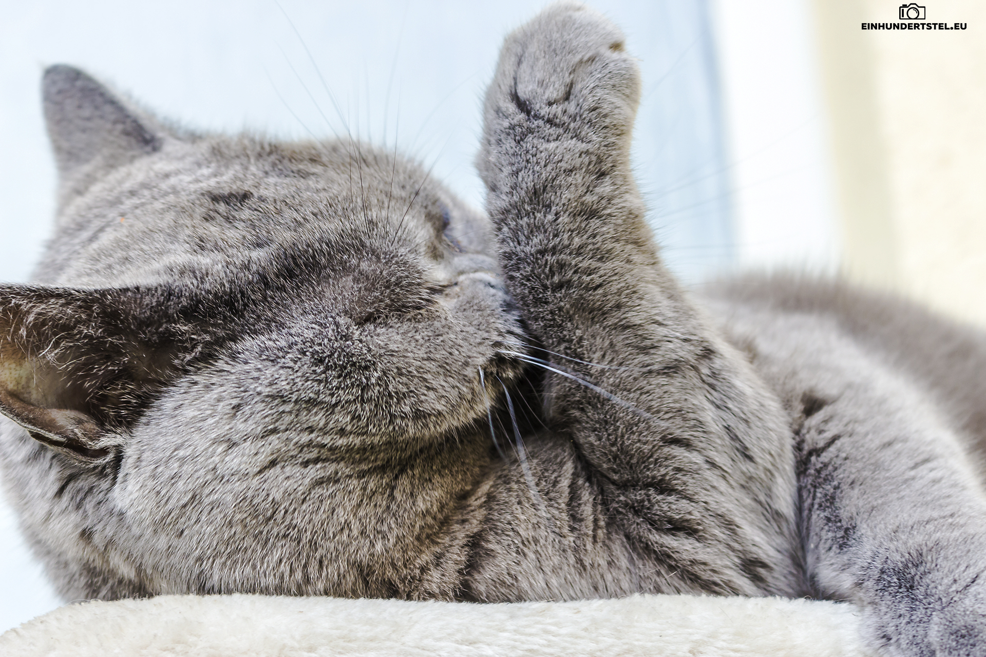 Wenn ich ehrlich bin, hat sie schon ein niedliches Gesichtchen. Bei diesem himmelblauen Schmelzblick kann ich dann doch nicht widerstehen und helfe ihr bei der Fellpflege. Sie hat ja so unendliche viele Haare. Mensch bin ich froh, dass die nicht mir gehören.