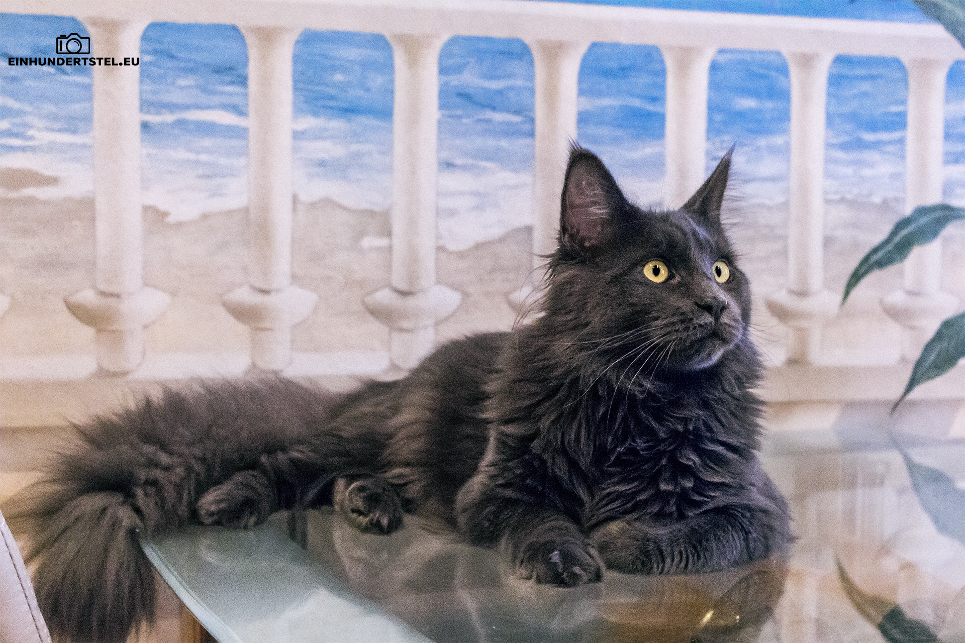 Die Tür geht auf, genauer gesagt, die Balkontür. Jetzt schlüpft Sayuri flink wie ein Wiesel durch den Türspalt und zack, auf den Tisch. Von da aus beobachtet sie die Vögel. Nicht das kleinste Geräusch entgeht ihr. Warte, was hat sie da entdeckt. Ist da nicht ein kleines schwarzes Insekt einfach an ihr vorbei gekrabbelt. So geht das nicht. Sofort ist sie voll bei der Sache und lässt es nicht mehr aus den Augen.