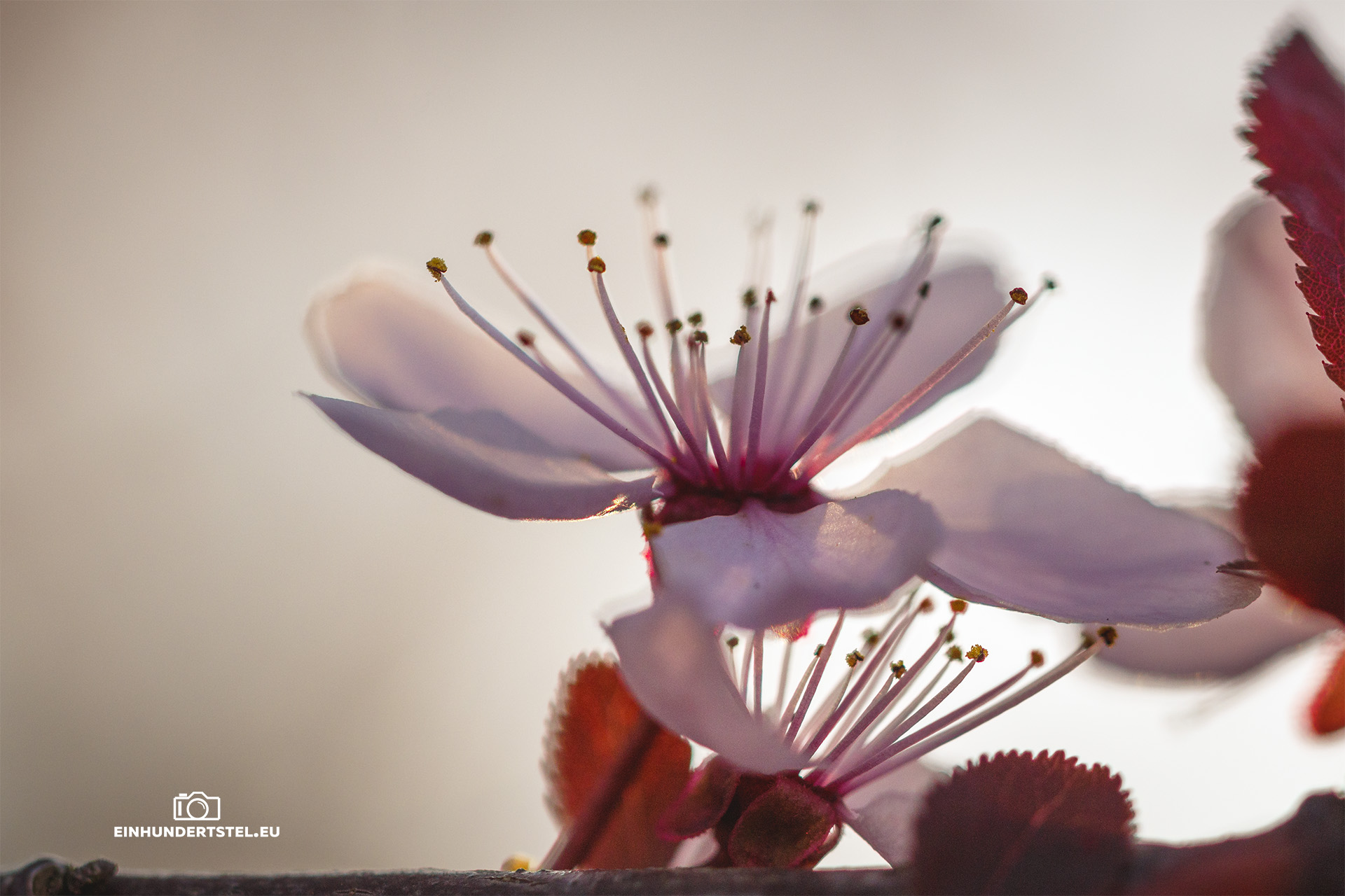 Bei dem folgenden Bild und in der Galerie die oberen Blüten könnten von dem Baum der Blutpflaume sein. Sicher bin ich jedoch nicht. Früher haben wir doch von solchen Bäumen überhaupt nichts gehört. Eigentlich weiß ich nicht mal seit wann es die überhaupt gibt.
