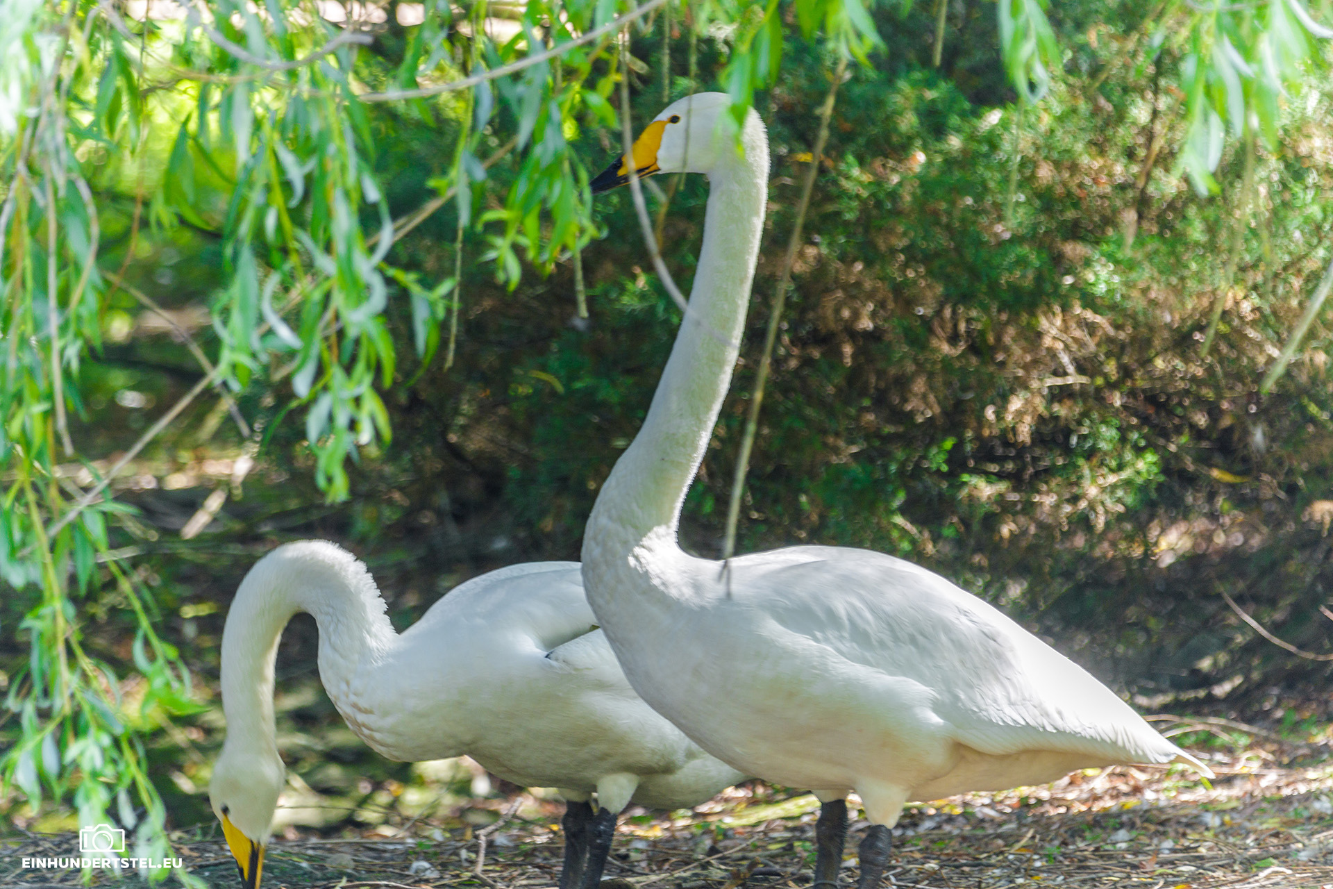 Einen schwarzen Schwan, den Trauerschwan, haben wir auch gesehen. Dieser hat wohl den längsten Hals aller Schwäne und kann damit super gut in tieferen Gewässern nach Wasserpflanzen gründeln. Mit seinen 31 Halswirbeln hält er den Rekord in der Vogelwelt.