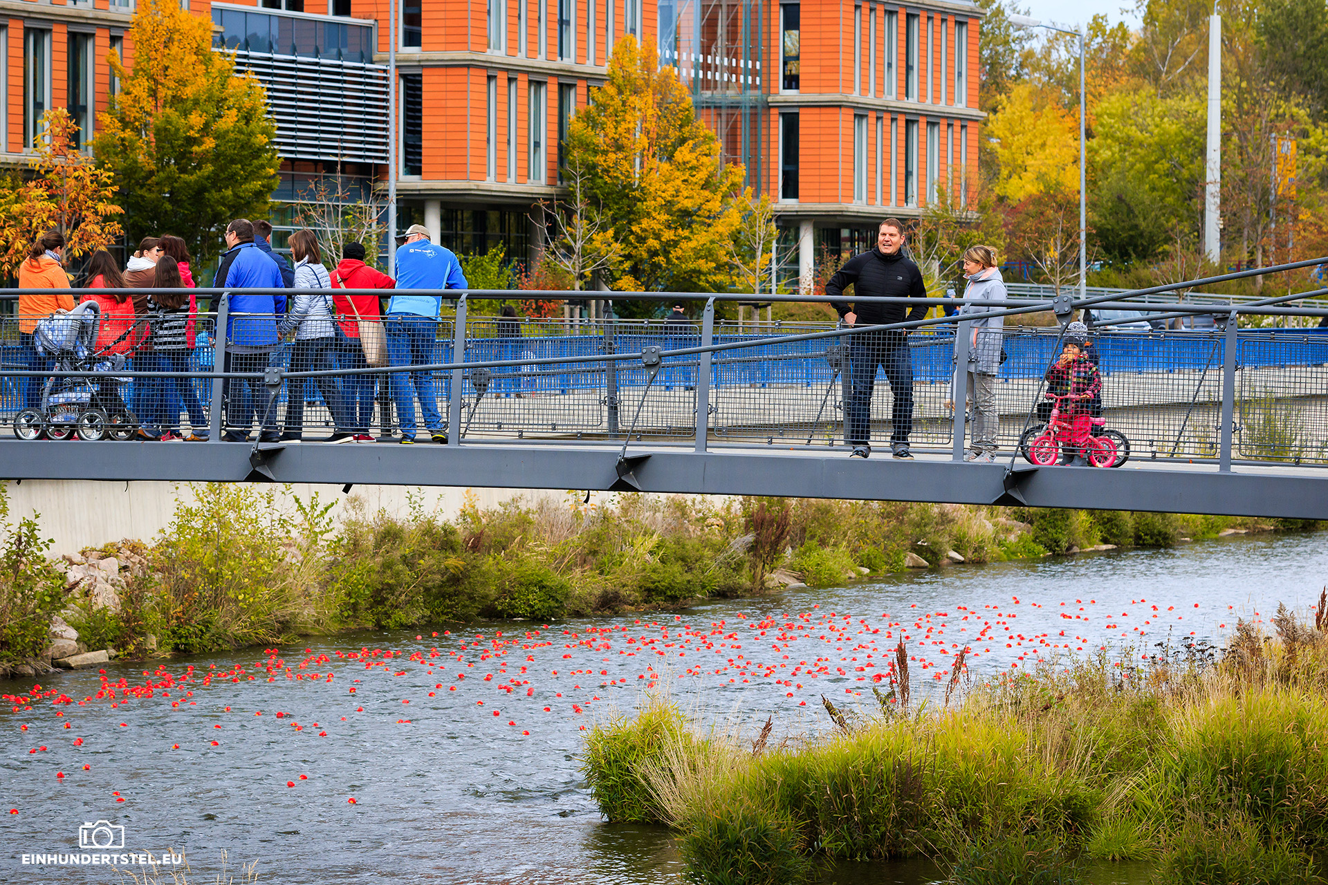 Tatsächlich mussten dafür nicht lebendige Enten eingesetzt werden. Nein, es durften rote Gummienten in die Weiße Elster.