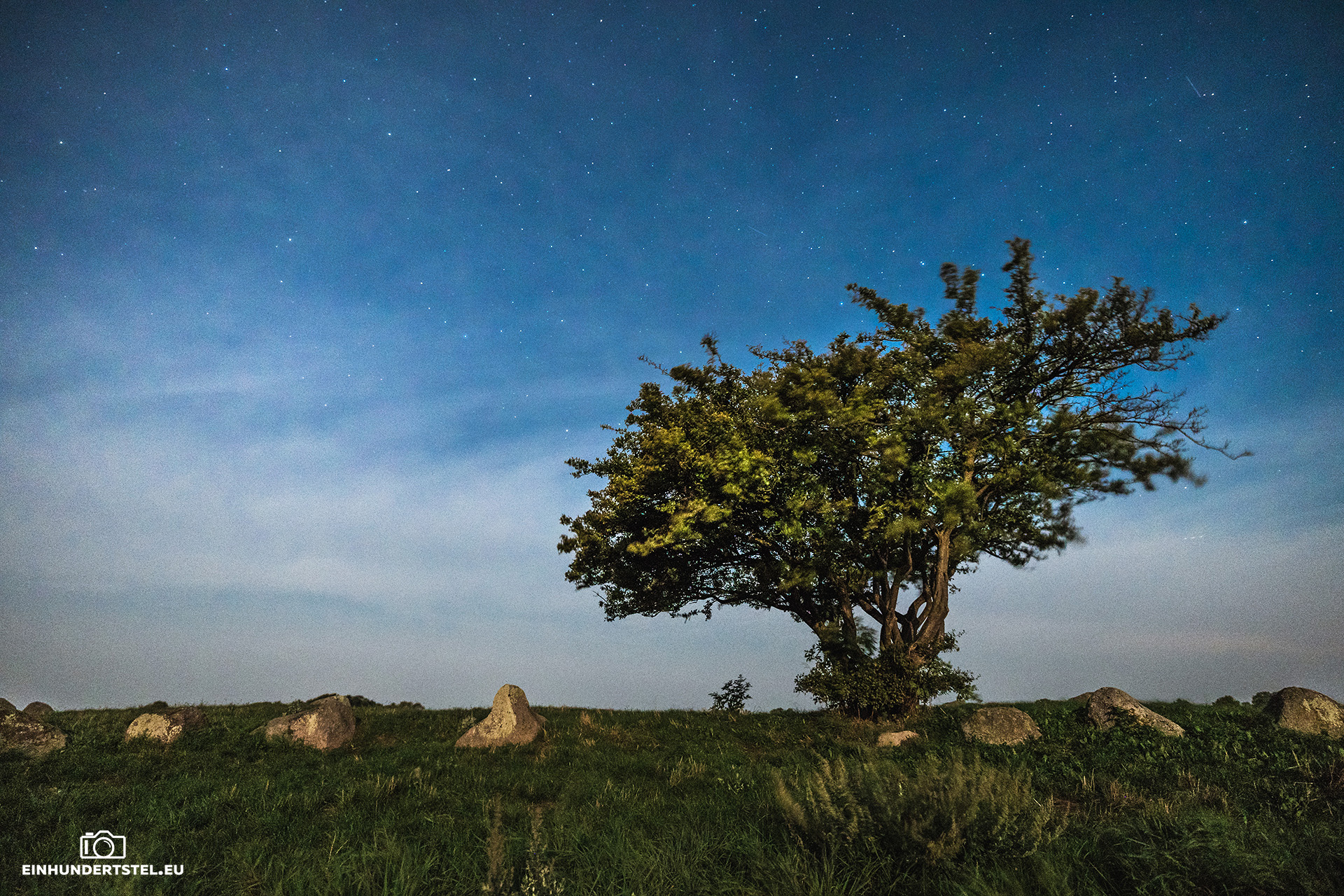 Einmal durch den Ort fahren kann ja jeder. Übrigens: Dranske hat etwa 1100 Einwohner. Damit ihr eine grobe Vorstellung habt. Naja jedenfalls hatte ich vor dem Urlaub natürlich schon mal im Internet nach Motiven gesucht. Dabei stieß ich auch auf das Großsteingrab bei Nobbin. Ich hatte mir ein tolles Sternenfoto dort vorgestellt.