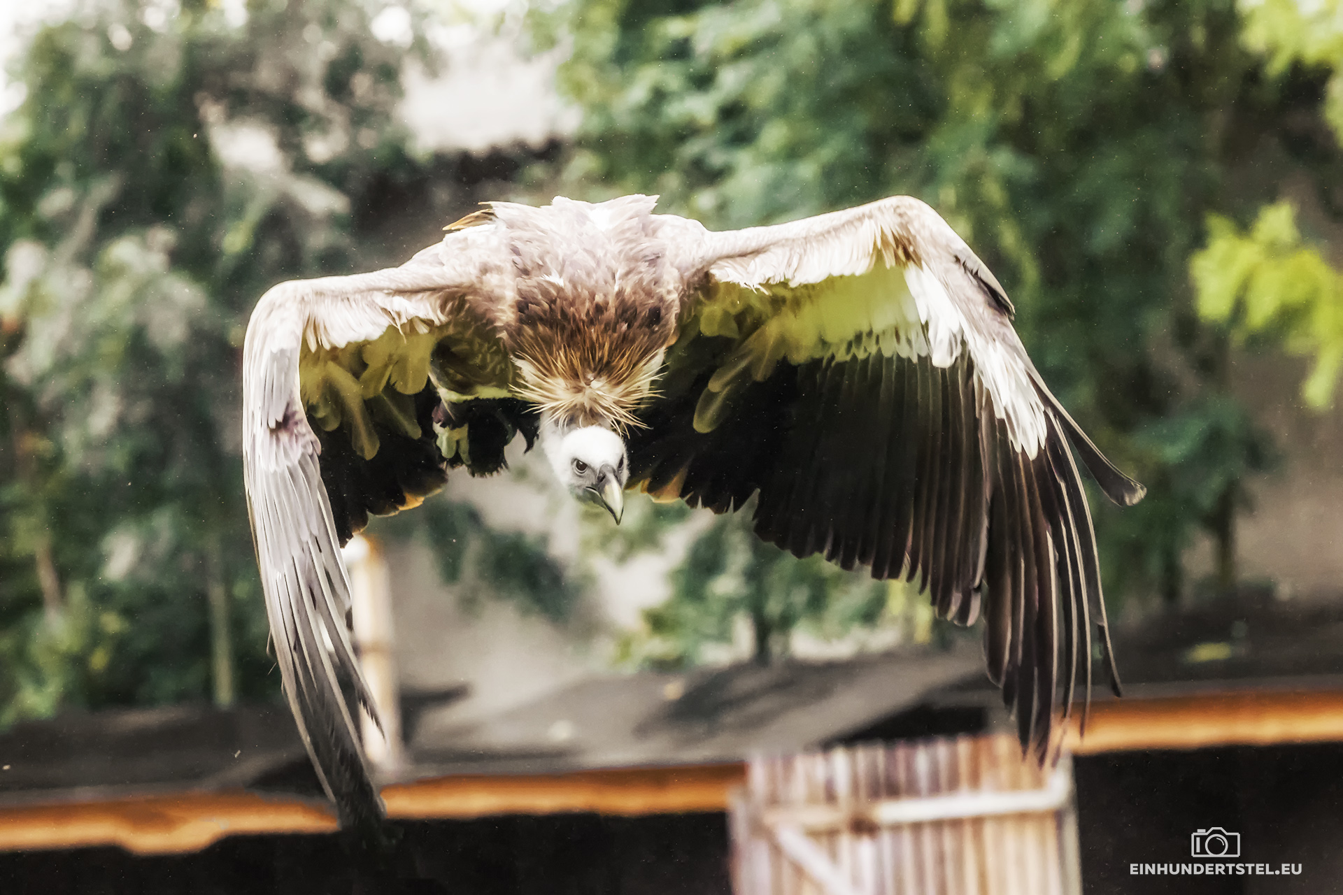 Voller Speed kommt sie auf die Zuschauer zu geflogen und stoppt trotzdem noch rechtzeitig ab, bevor sie mit den Zuschauern kollidiert. Eine Frau war da wohl nicht ganz so sicher und hat vor Schreck ihr Handy fallen lassen. Mit einer Flügelspannweite von ungefähr 3 m ist sie auch eine imposante Erscheinung (zeigt sie unten in der Bildergalerie auch ganz eindeutig). Doch als Schneegeier ernährt sie sich nur von Aas.