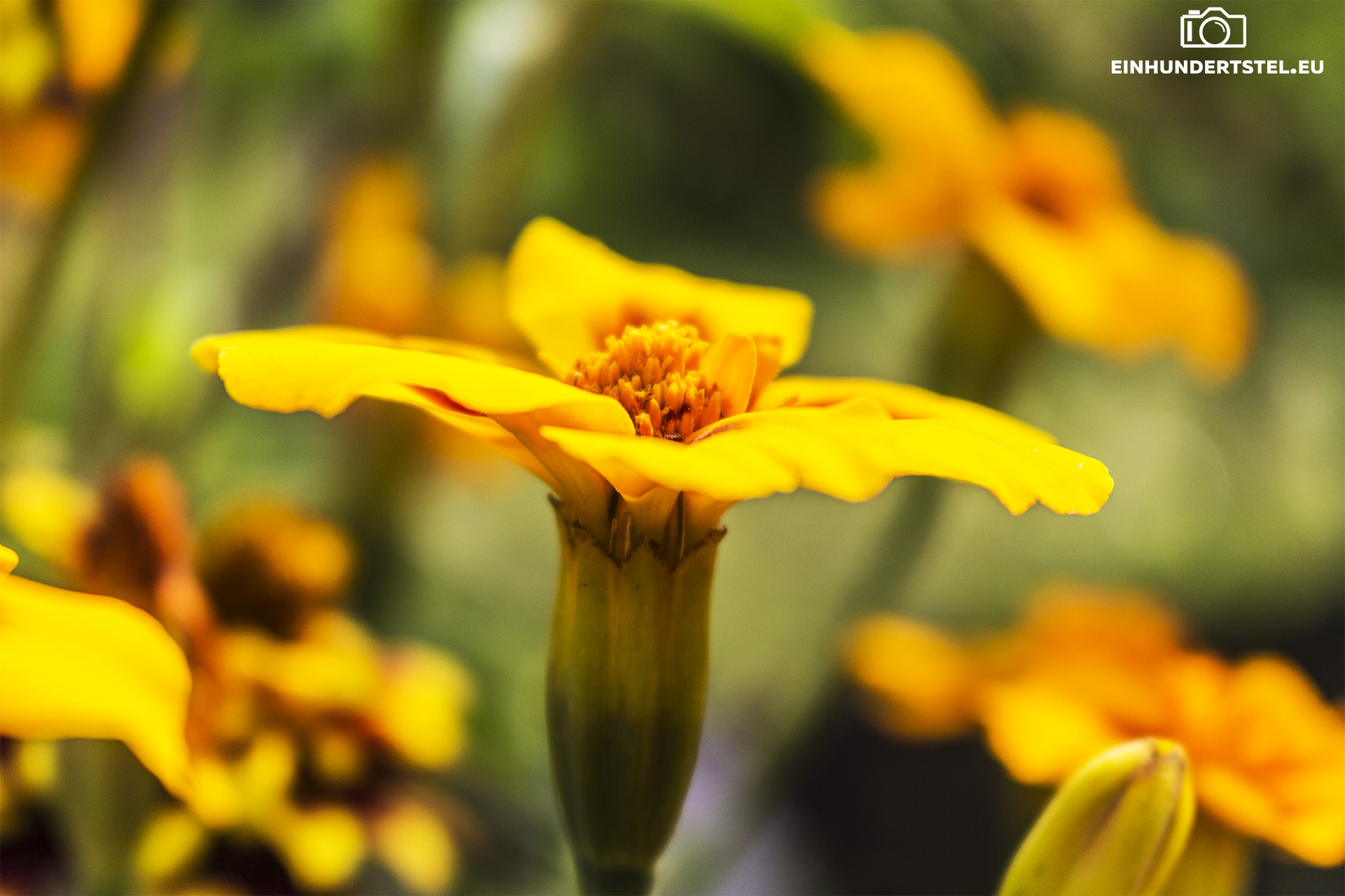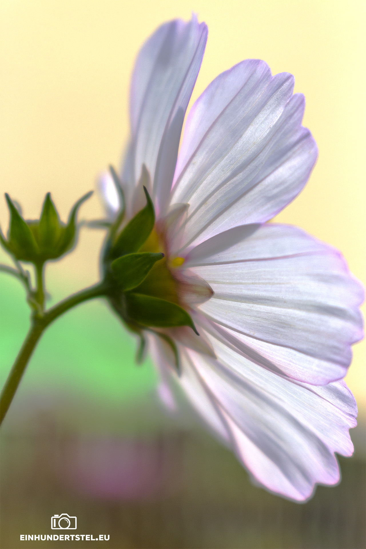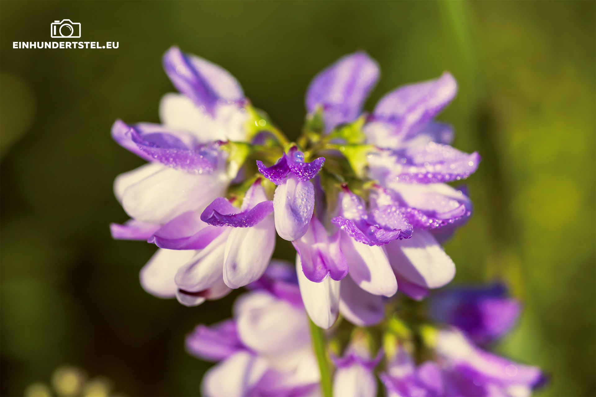 Dieses Foto habe ich aber nicht im Garten fotografiert. Trotzdem wollte ich es zu diesem Beitrag dazu tun. Ich habe es beim Sonnenaufgang mit Blick auf Plauen als Macro aufgenommen. Auf dem Boden kriechend, natürlich hab ich nasse Knie bekommen, konnte ich den schönen Schein des Sonnenaufganges einfangen.