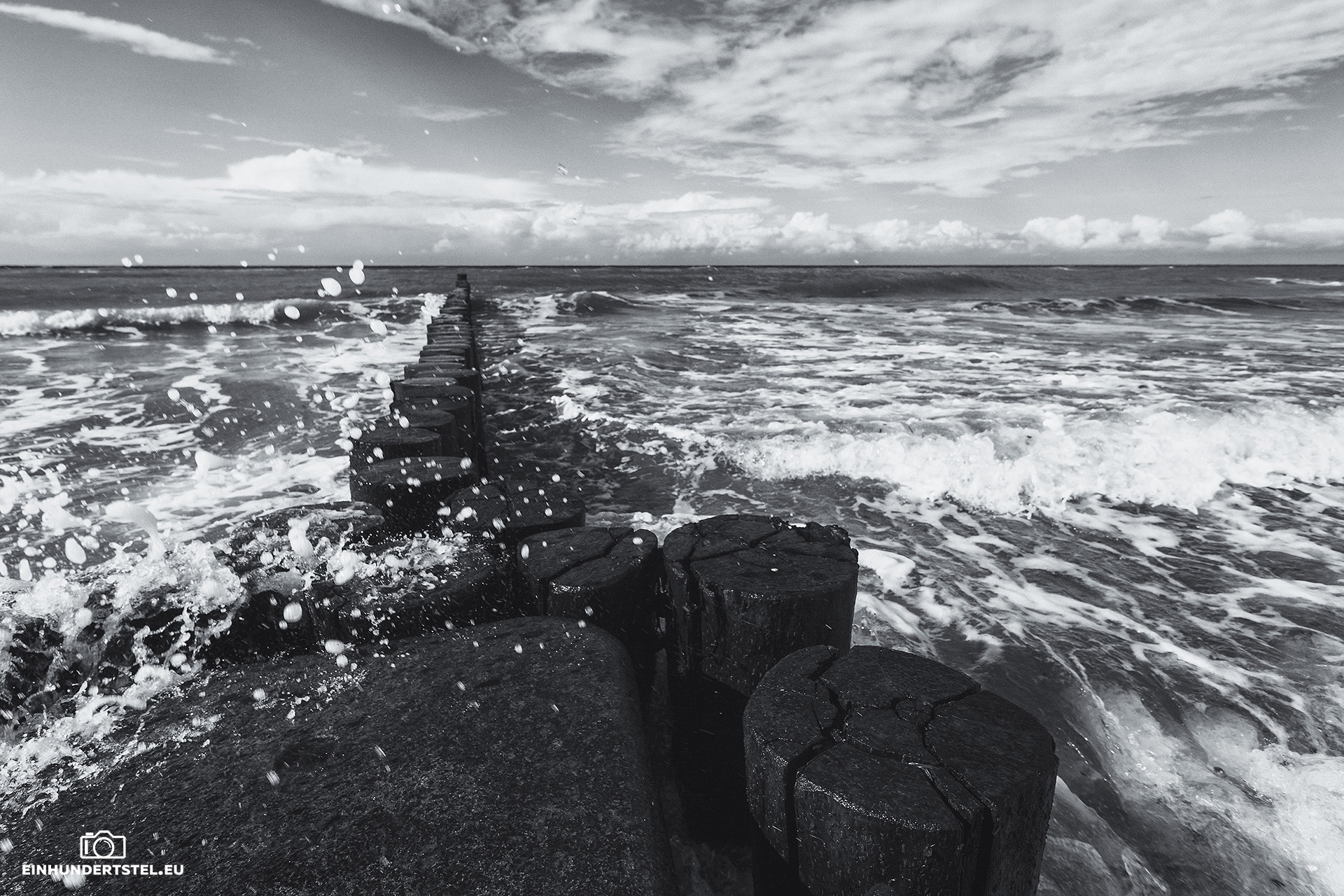 Das Wetter hat uns auch an diesem Tag nicht im Stich gelassen und uns eine traumhafte Kulisse geboten. Somit blieben kaum Wünsche offen, denn wir konnten die Wellen fotografieren, die sich an den Bohlen und Steinen brachen, ein wunderschönes Haus mit Reetdach, einen Regenbogen und auch Kitesurfer in Action.