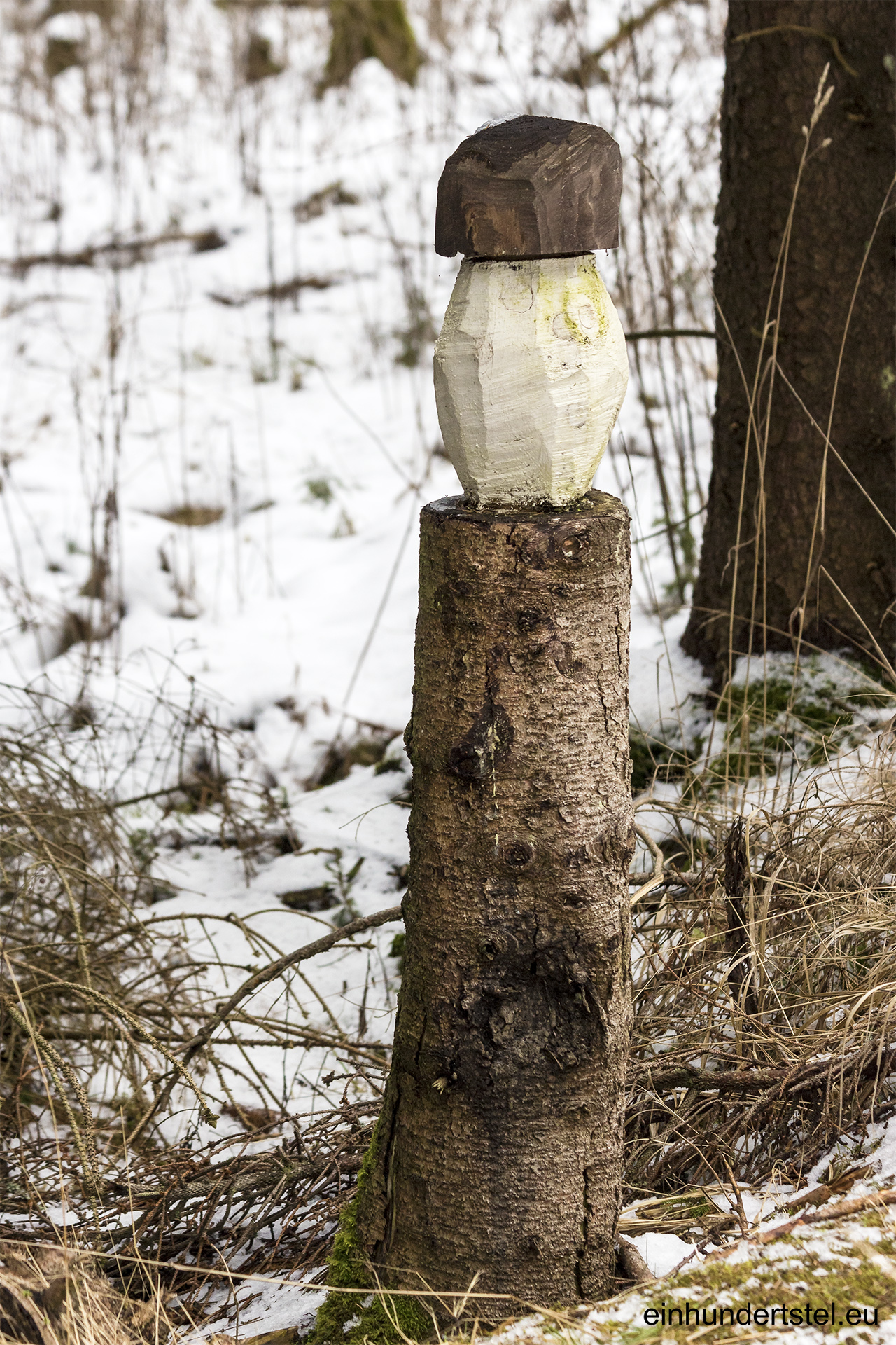 das Model doch tatsächlich geschafft, zurück immer um dem Baumstamm
