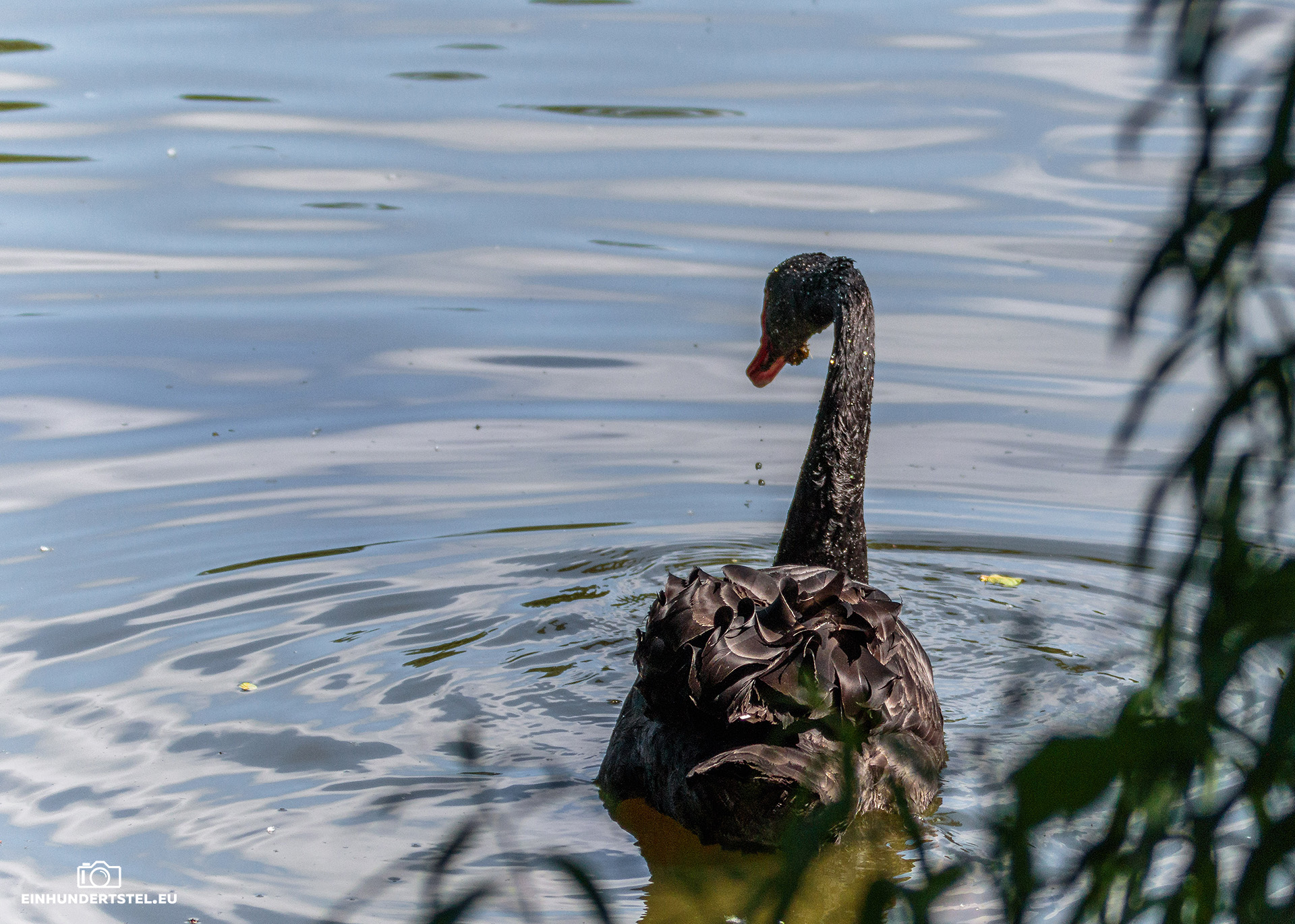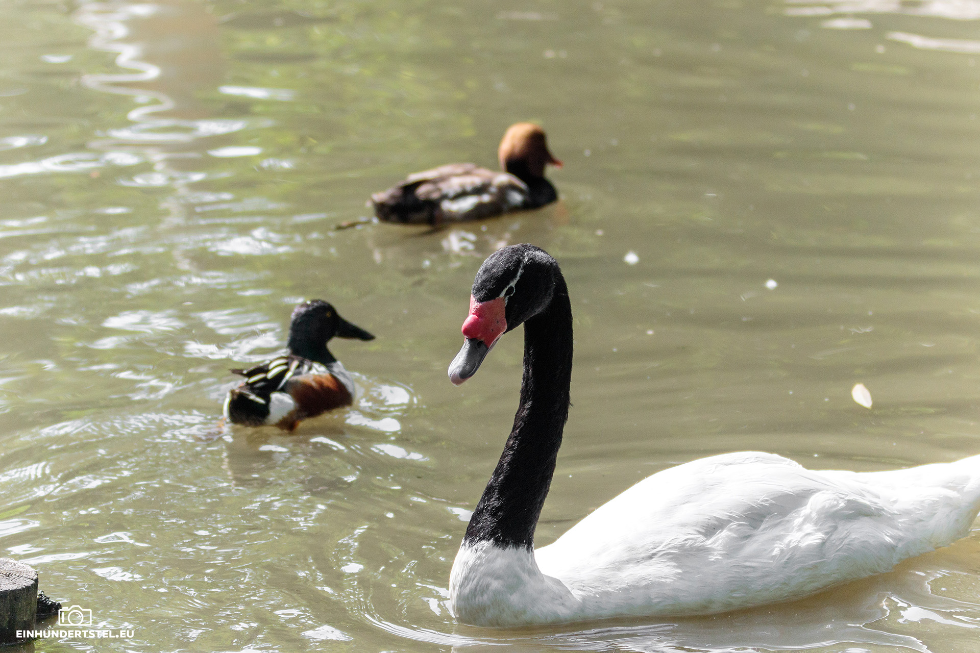 Einen schwarzen Schwan, den Trauerschwan, haben wir auch gesehen. Dieser hat wohl den längsten Hals aller Schwäne und kann damit super gut in tieferen Gewässern nach Wasserpflanzen gründeln. Mit seinen 31 Halswirbeln hält er den Rekord in der Vogelwelt.