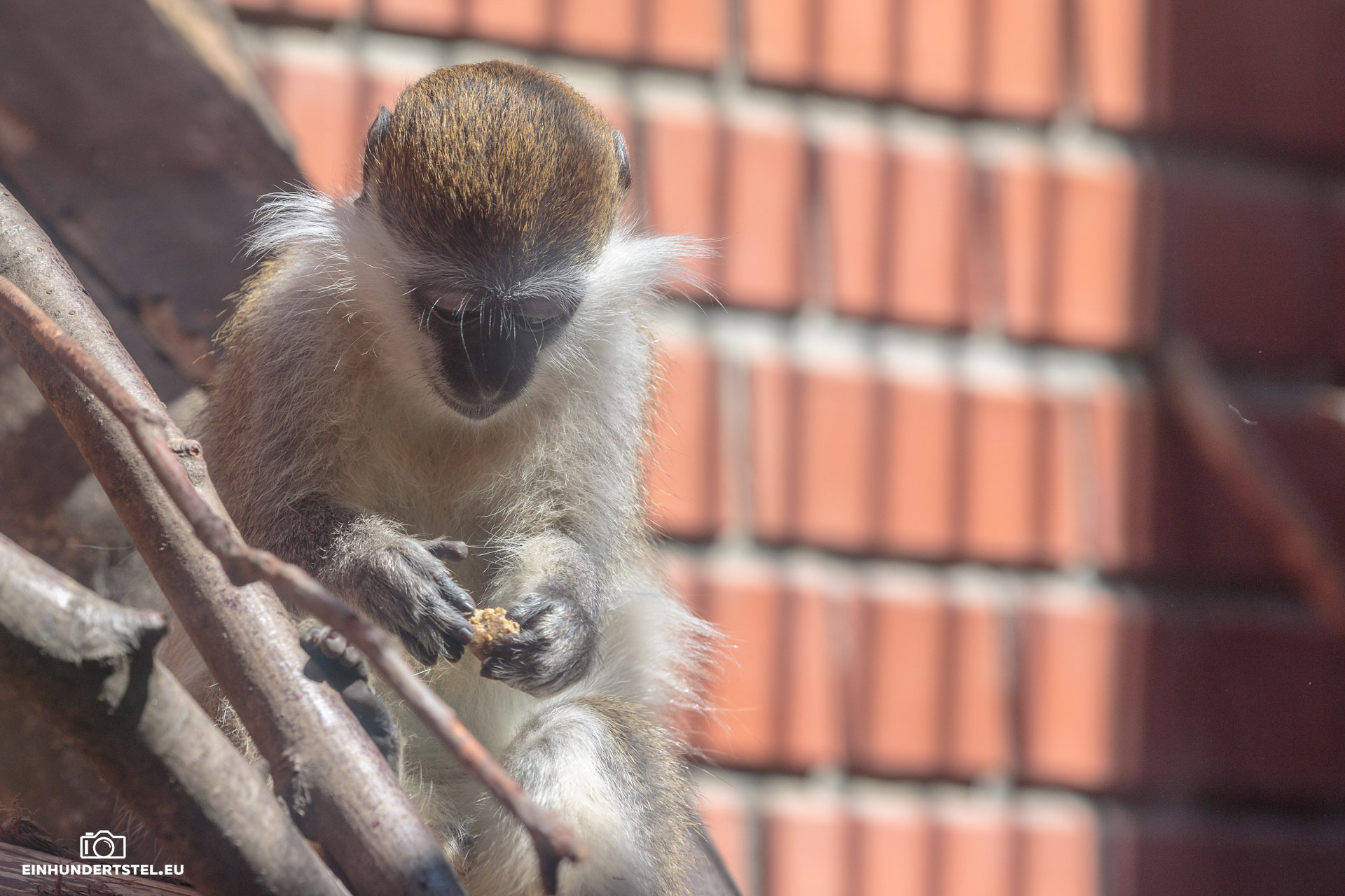 Bei den Affen auch. Nur konnte man durch die Scheibe, welche sich bei der Sonne sehr gespiegelt hat, den nicht gut sehen. Trotzdem habe ich auch ein Bild erwischt, wo ich denke, dass man den kleinen Affen gut erkennen kann. Doch trotz allem ist so eine Scheibe nicht so ideal wenn man fotografieren möchte. Alles mögliche spiegelt sich darin, einen selbst eingeschlossen.