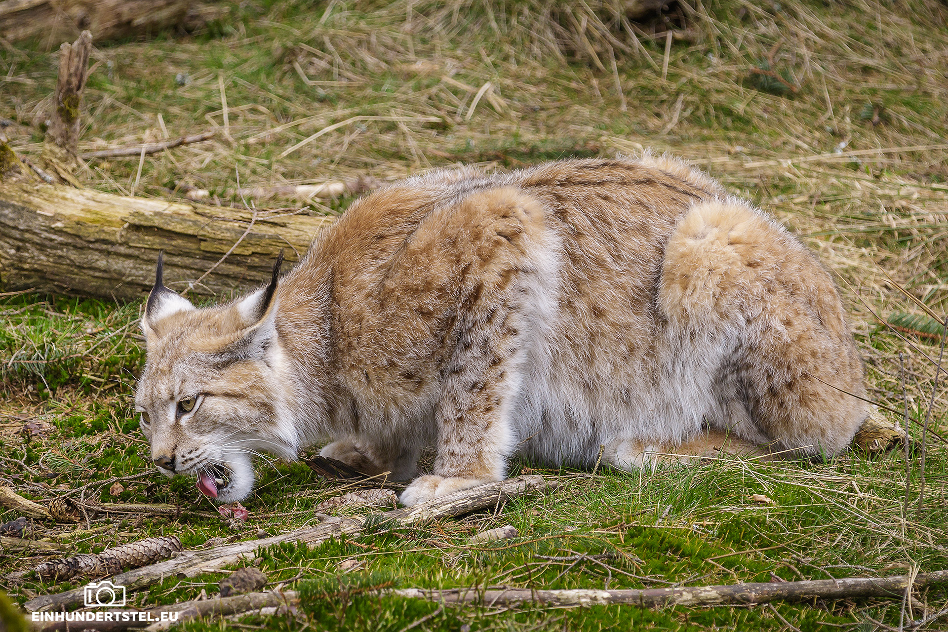 Hierauf folgten die Luchse. Eine echt coole Idee, die auch über eine bewegliche Angel zu füttern und so die sensationellen Luftsprünge den Besuchern präsentieren zu können. Ein Luchs springt wohl auch dort 3 m hoch. Auch für uns haben sie tolle Sprünge gezeigt.