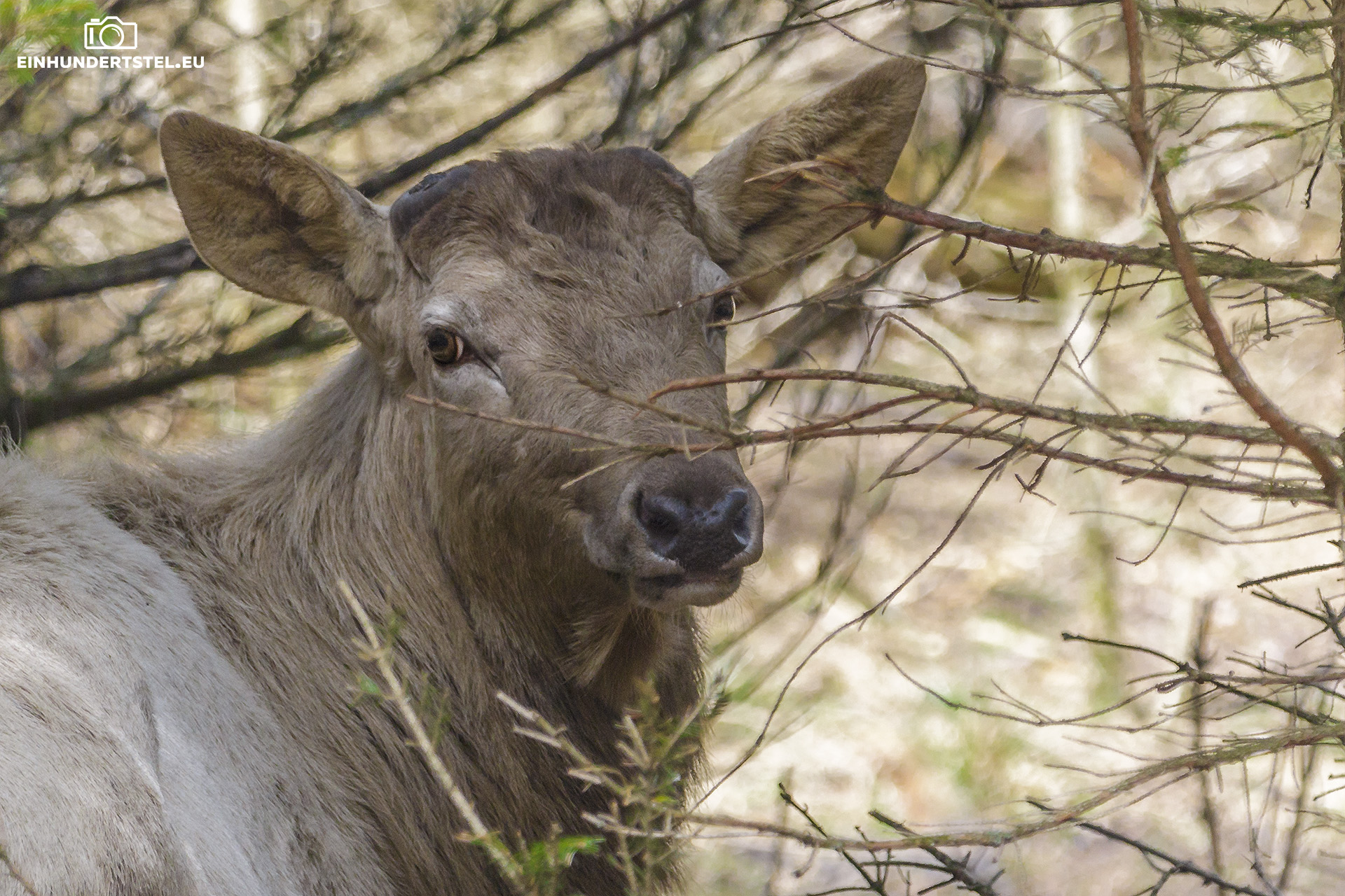 Nachfolgend kamen wir zu dem Rotwild. Dort ist auch ein weißer Hirsch zu sehen. Angelockt wurden sie mit einem echten Brunftschrei, der direkt über den Ausgießer einer Gießkanne erfolgte.